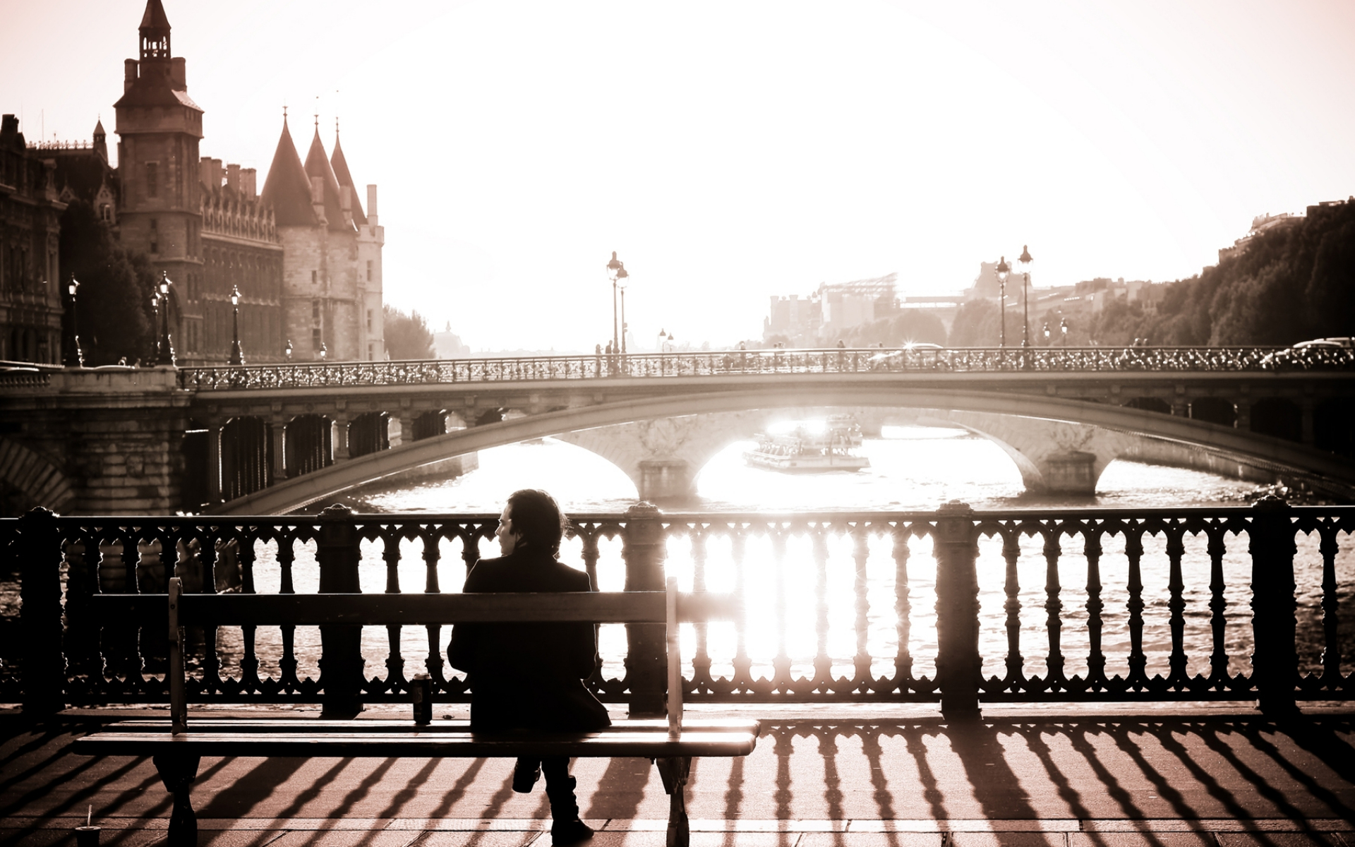 Обои ориентир, мост, вода, город, черный и белый, фото, заставка