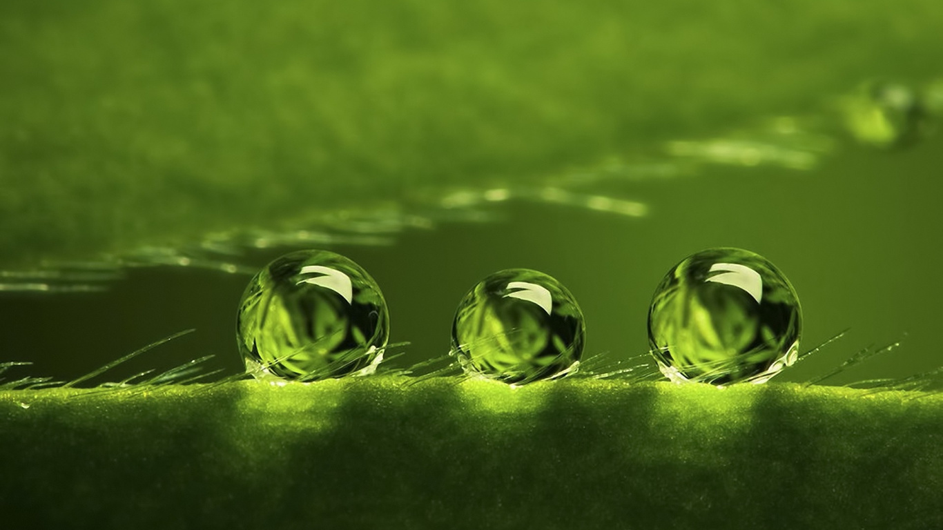 Обои 1366x768 зеленый, вода, падение, роса, влага, HD ready картинка