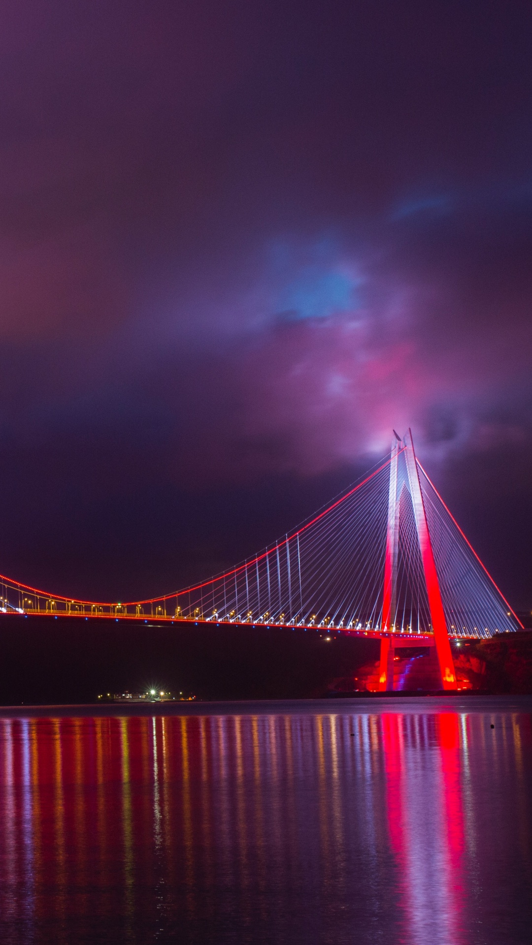 Обои подвесной мост, вантовый мост, мост, свет, отражение на телефон Android, 1080x1920 Full HD картинки