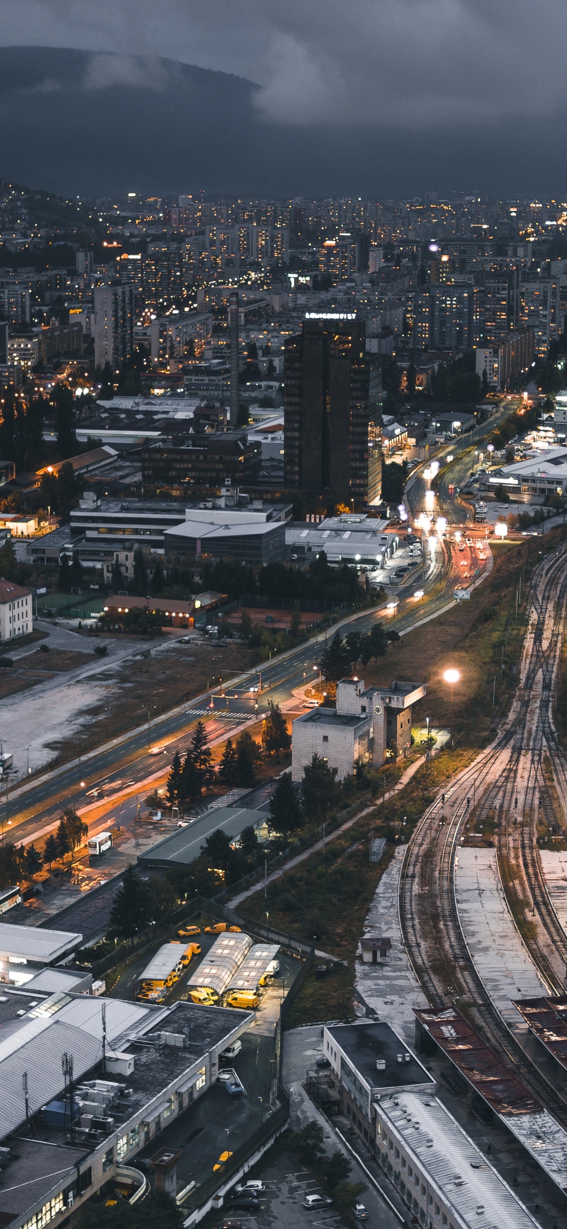 Обои здание, городской район, городской пейзаж, город, ночь для iPhone X / XS, заставка, 1125x2436 картинка