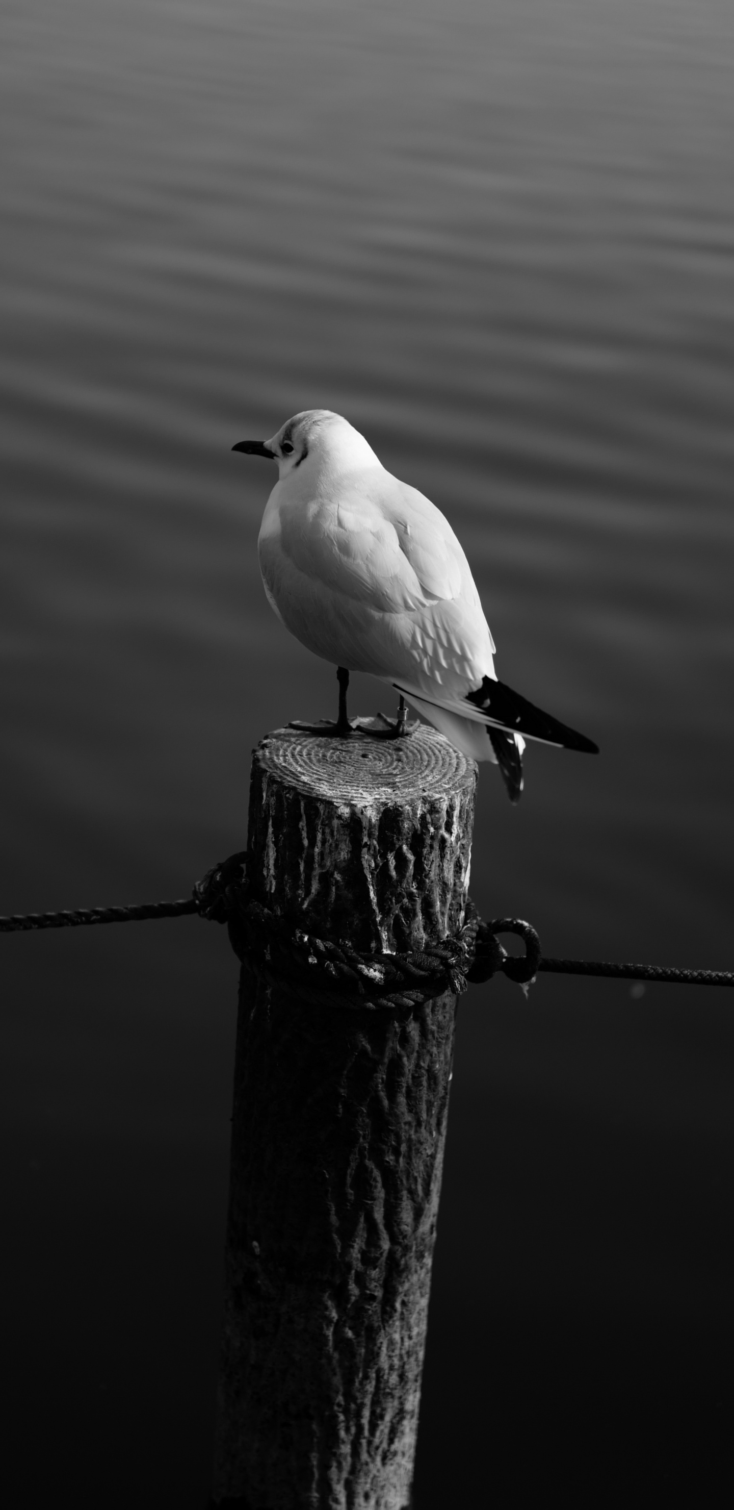 Обои вода, черный и белый, чайки, белые, черный для Samsung Galaxy S8/S8+/S9/S9+/Note 8/Note 9 QHD, заставка, 1440x2960 картинка