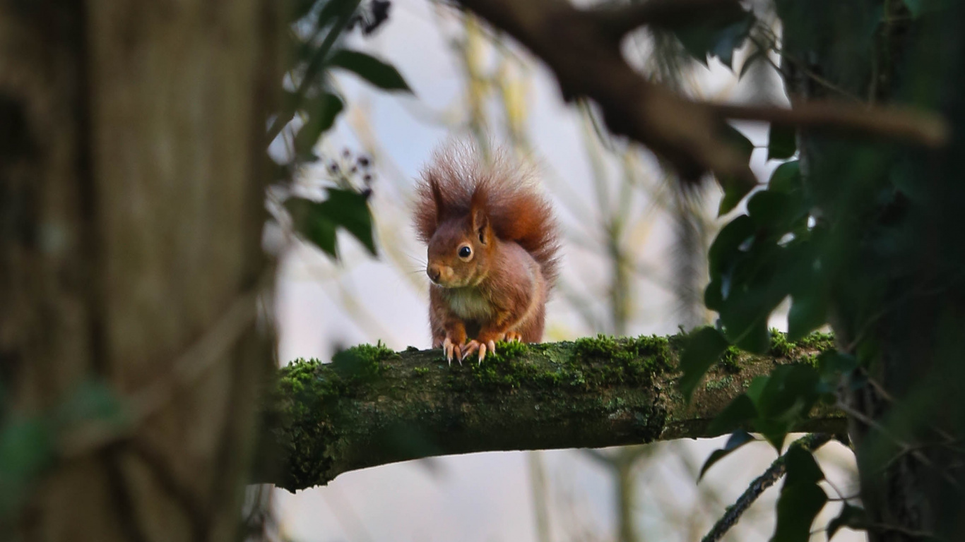 Обои 1366x768 живая природа, грызун, ветвь, дерево, белка, HD ready картинка