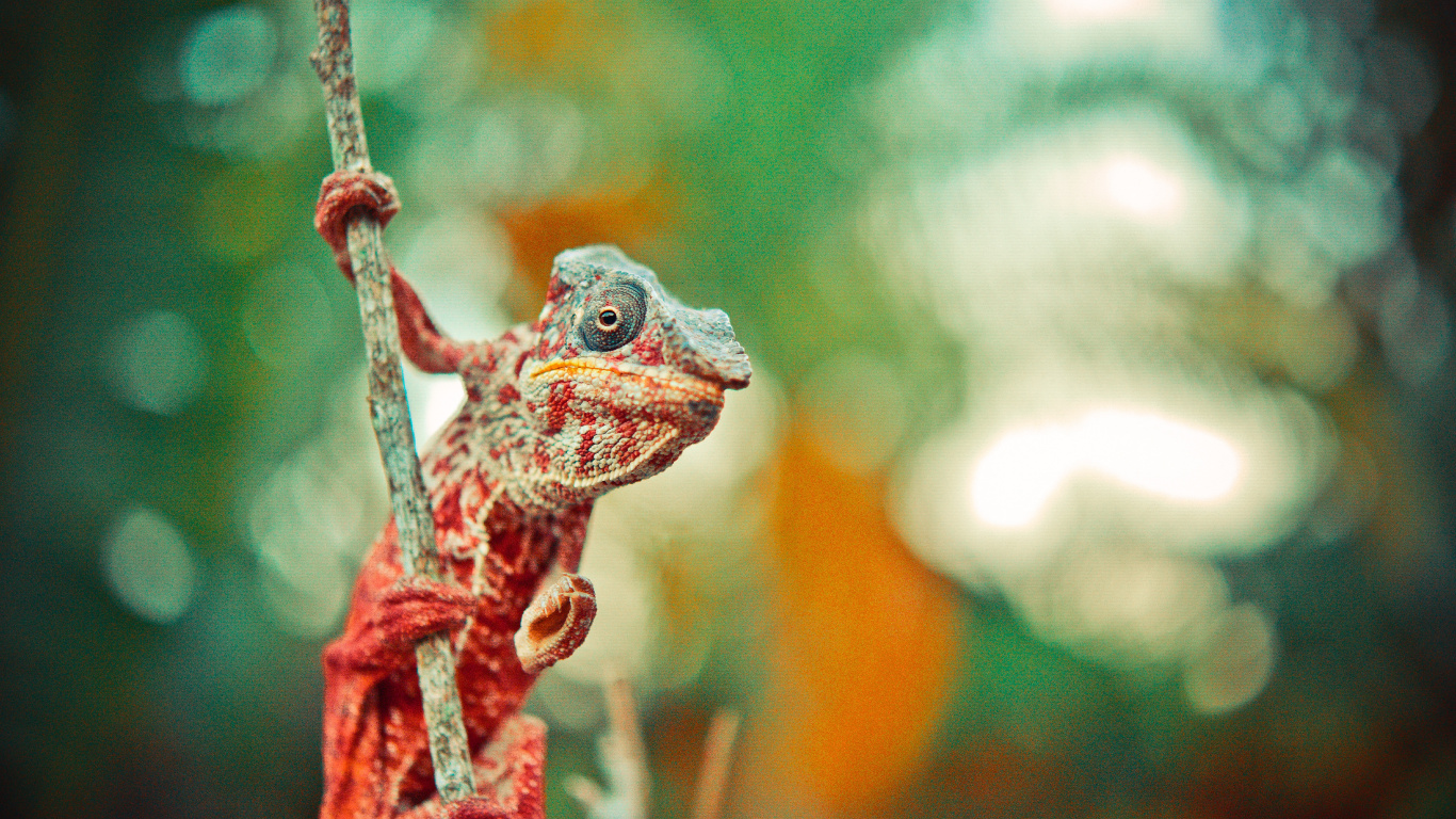 Обои 1366x768 пресмыкающееся, хамелеоны, ящерица, пантера Хамелеон, глаз, HD ready картинка