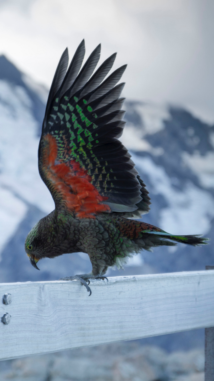 Обои Кеа, птица, клюв, крыло, адаптация для iPhone 6, 6S, 7, 8, заставка, 750x1334 картинка