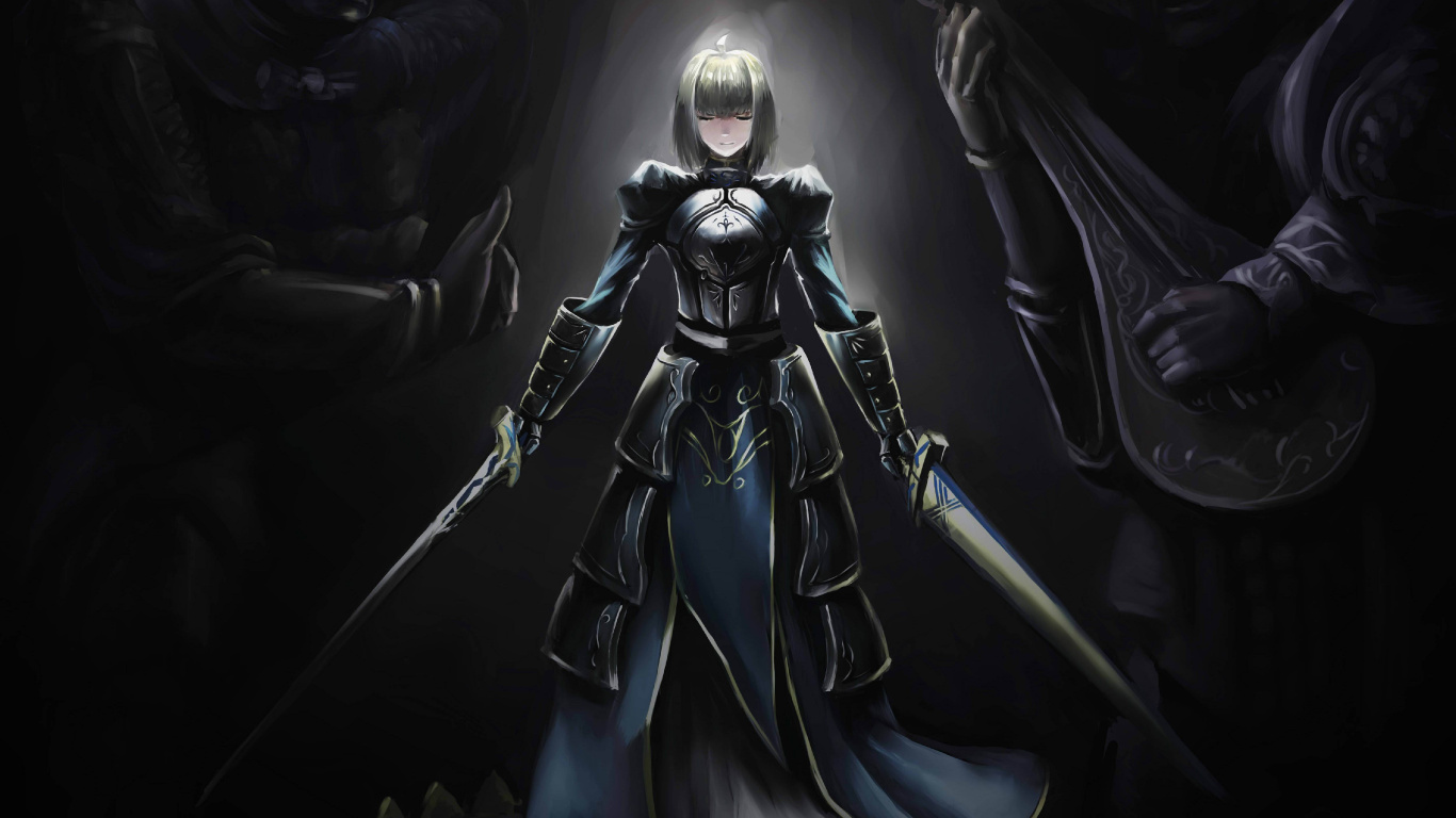 Обои 1366x768 сабля, Fate Zero, аниме, темнота, фигурка, HD ready картинка