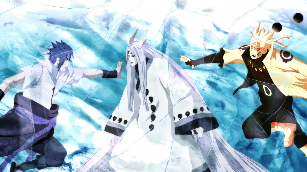 Обои 1280x720 Саске Учиха, Кагуя tsutsuki, Хагоромо tsutsuki, мультфильм, аниме, HD, HDV, 720p, 16:9 картинка