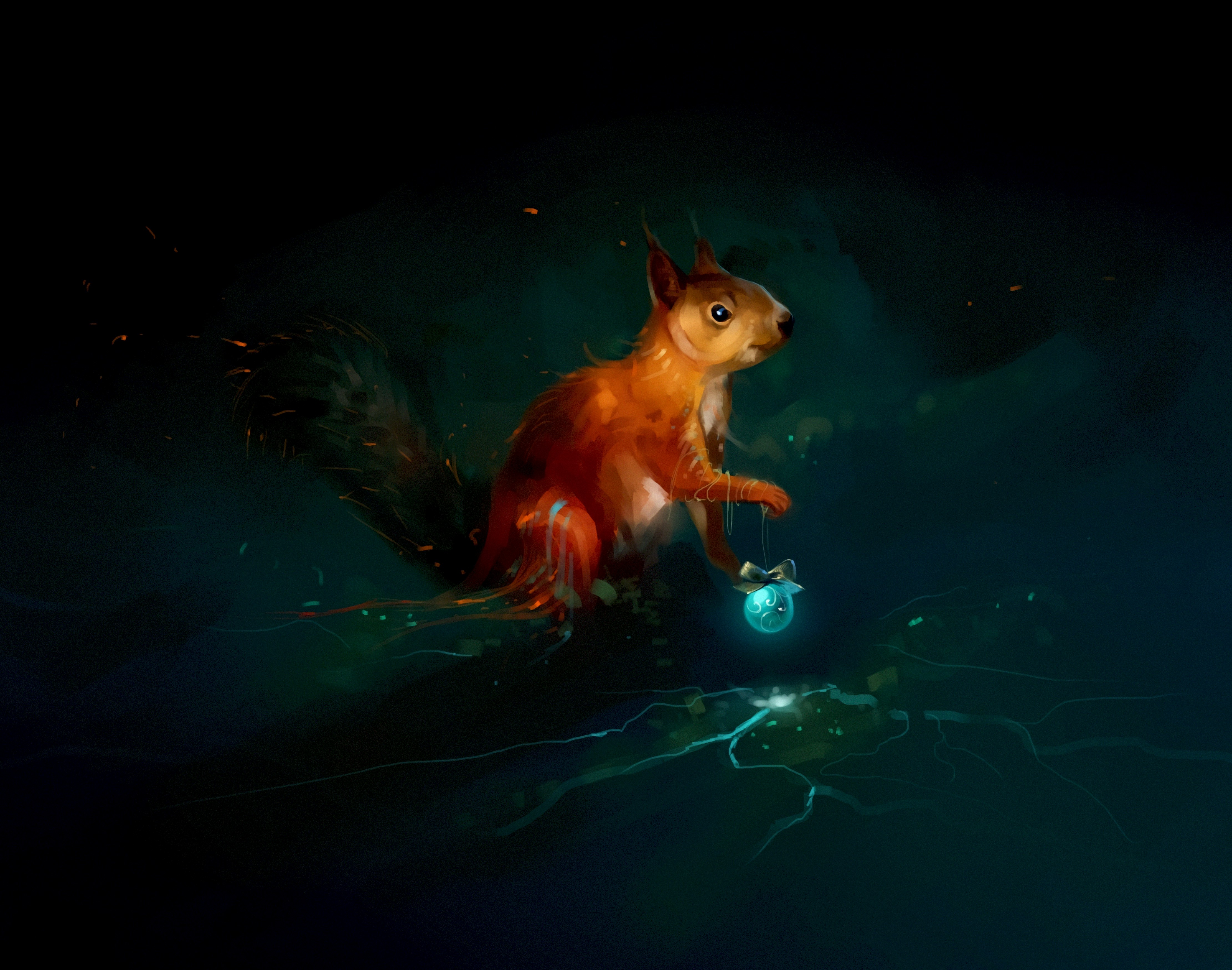 Обои грызун, белка, иллюстрация, темнота, космос, фото, заставка