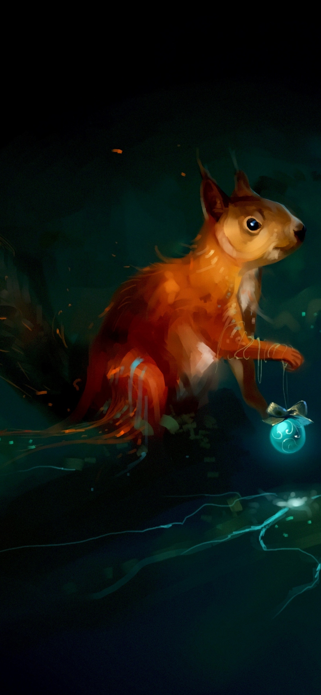 Обои грызун, белка, иллюстрация, темнота, космос для iPhone X / XS, заставка, 1125x2436 картинка