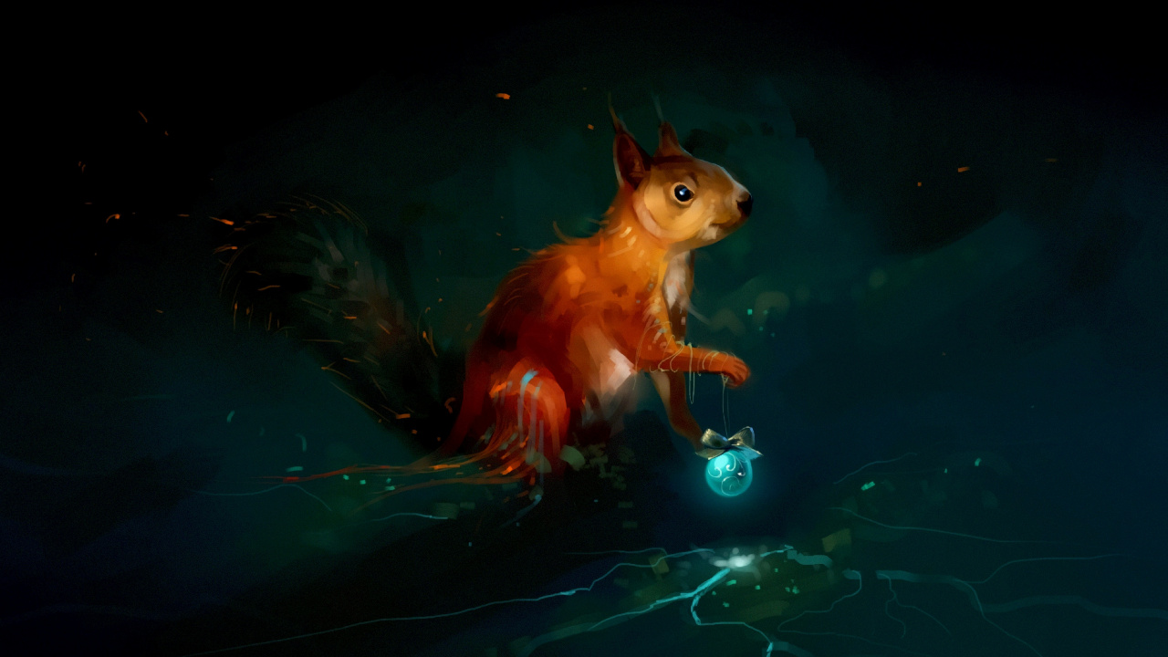 Обои 1280x720 грызун, белка, иллюстрация, темнота, космос, HD, HDV, 720p, 16:9 картинка