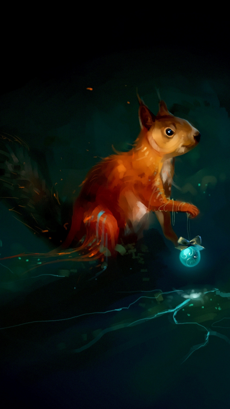 Обои грызун, белка, иллюстрация, темнота, космос для iPhone 6, 6S, 7, 8, заставка, 750x1334 картинка