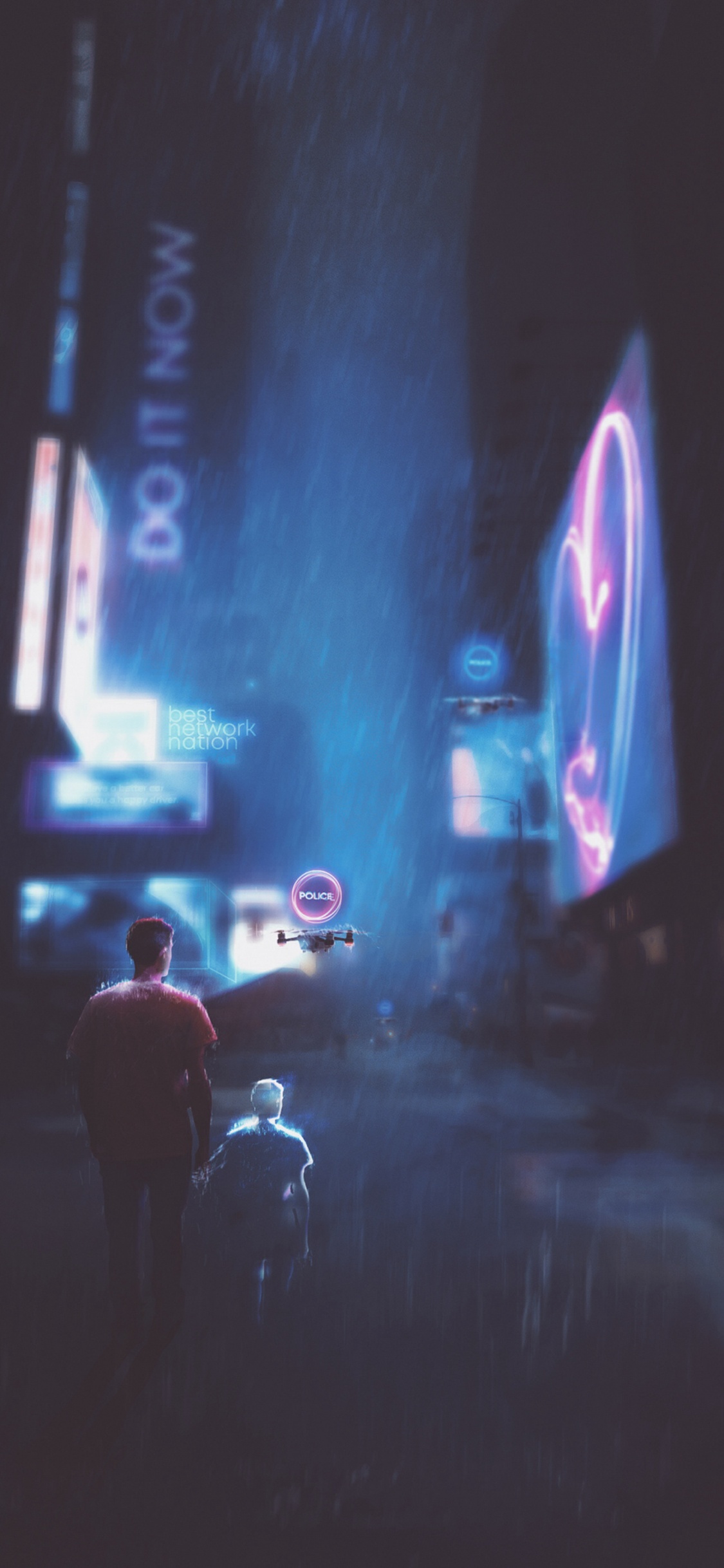 Обои Киберпанк, Киберпанк 2077, футуризм, синий, свет для iPhone X / XS, заставка, 1125x2436 картинка