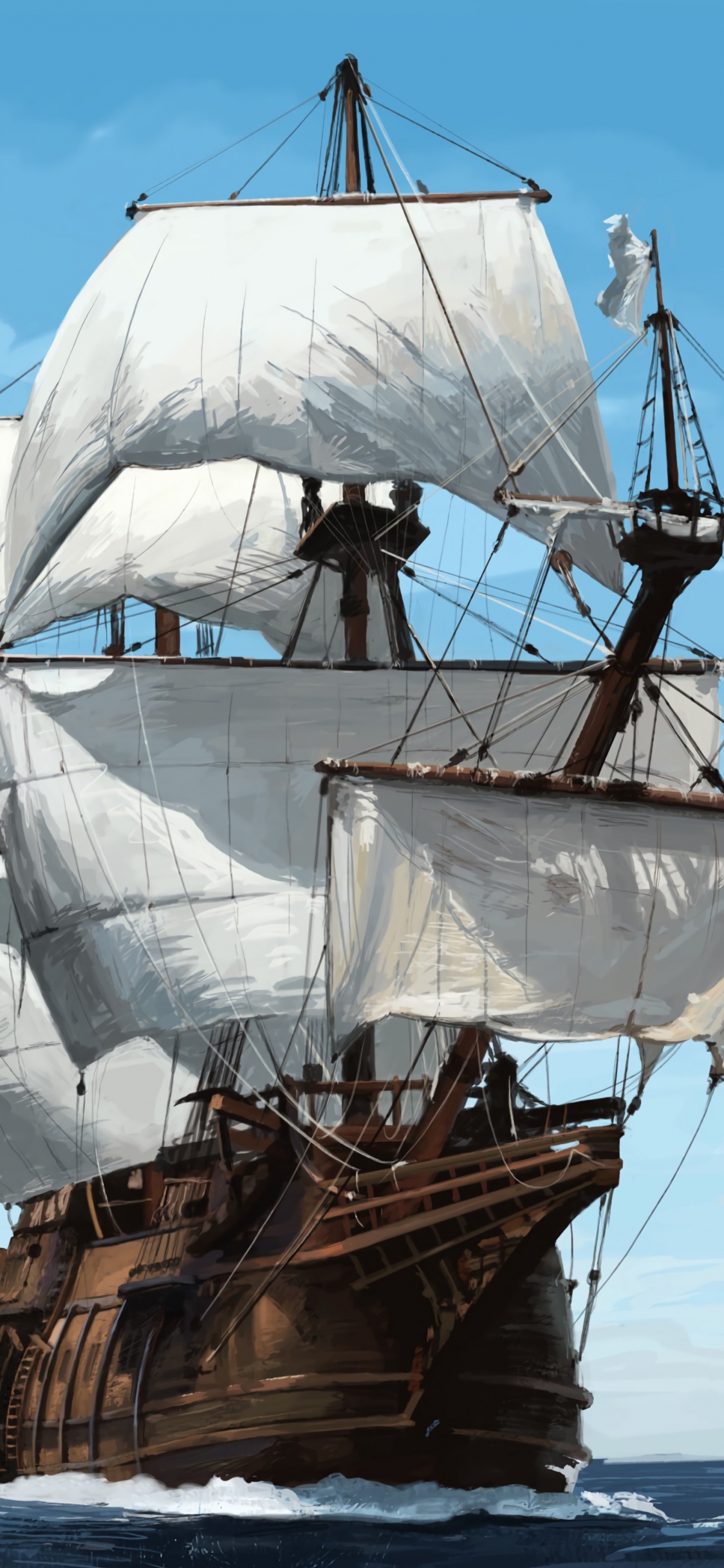 Обои корабль, арт, каравелла, лодка, манильский галеон для iPhone X / XS, заставка, 1125x2436 картинка