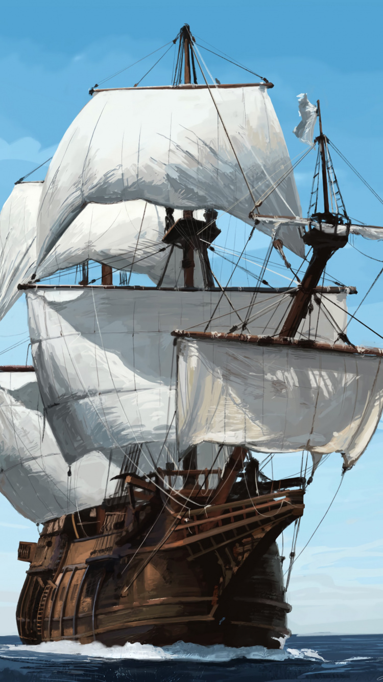 Обои корабль, арт, каравелла, лодка, манильский галеон для iPhone 6, 6S, 7, 8, заставка, 750x1334 картинка