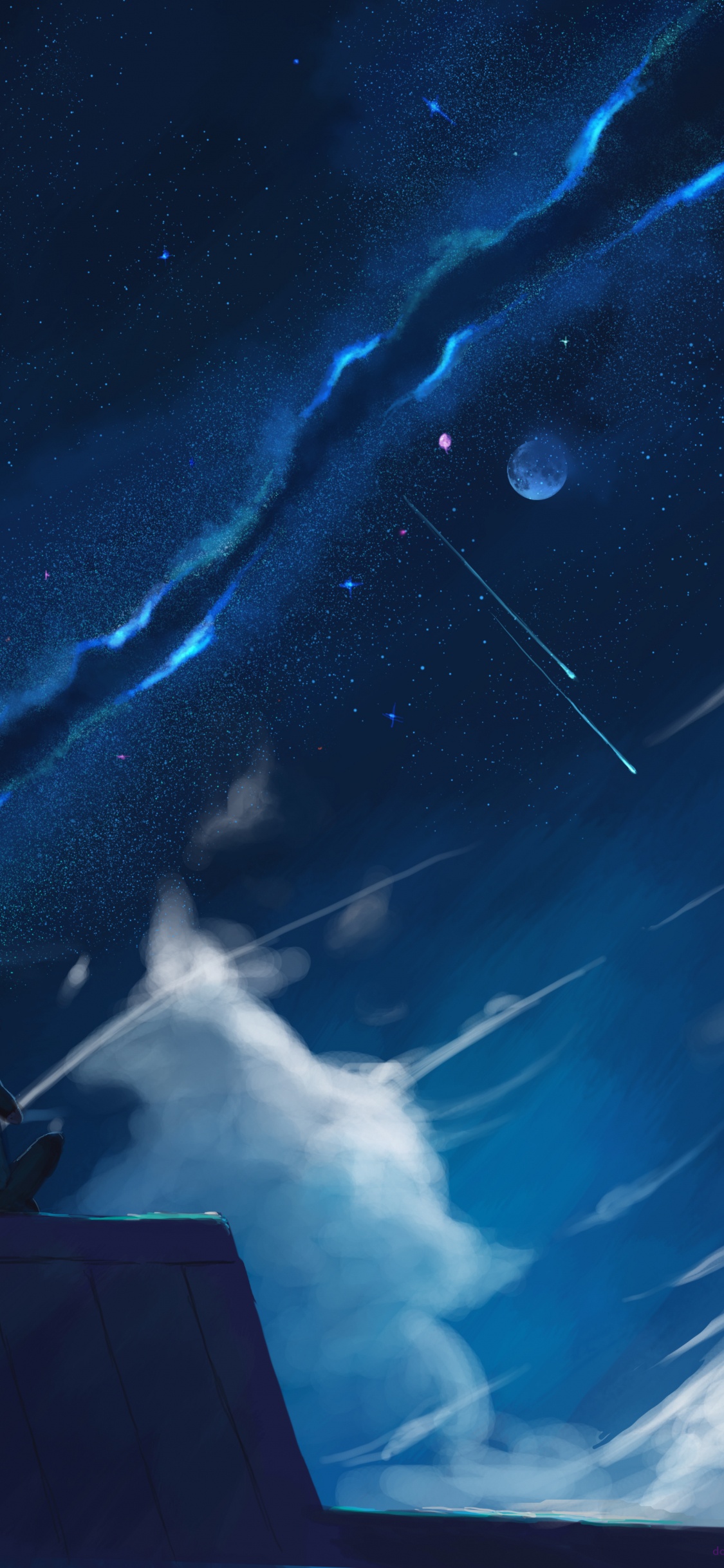 Обои синий, атмосфера, космос, ночь, облако для iPhone X / XS, заставка, 1125x2436 картинка