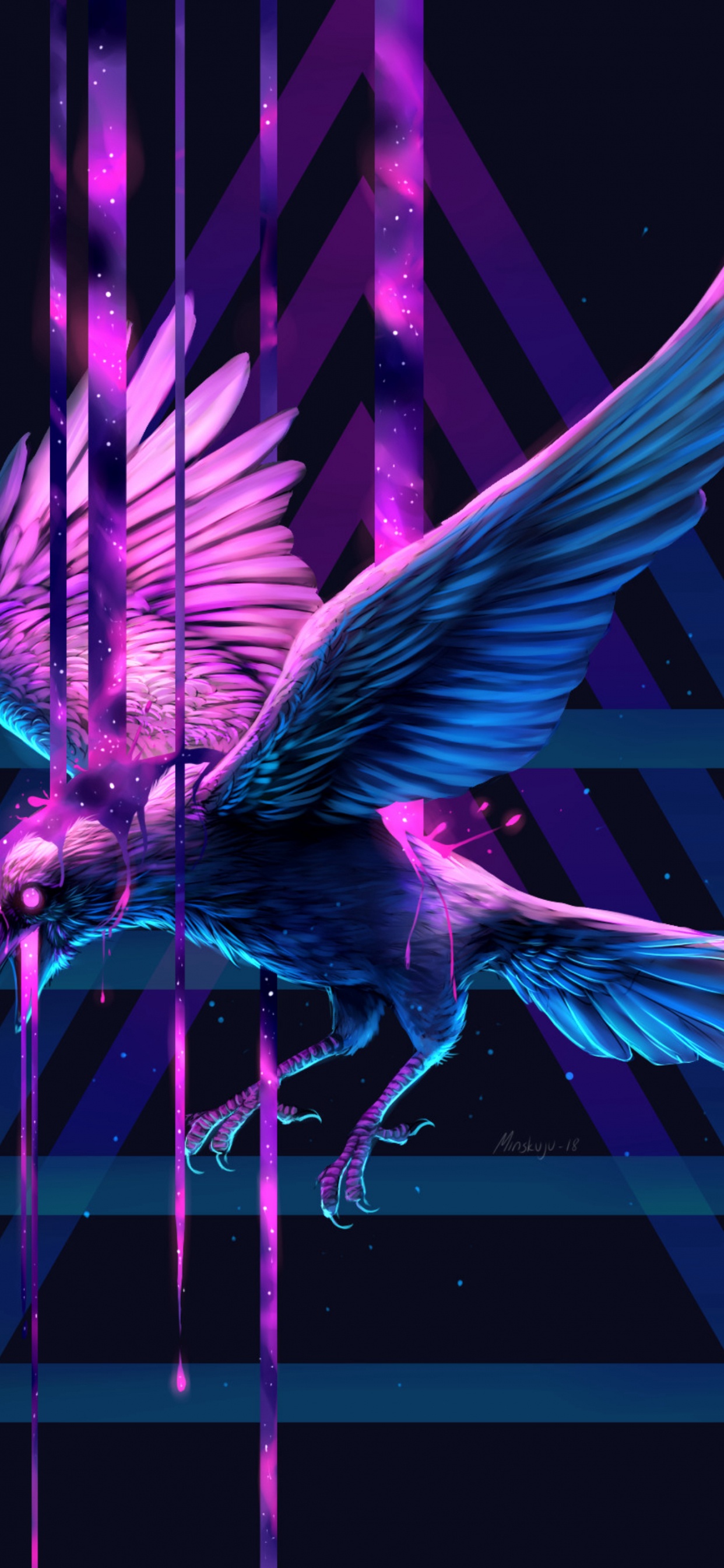 Обои ворон, ворона, графический дизайн, пурпур, Фиолетовый для iPhone XS Max, заставка, 1242x2688 картинка