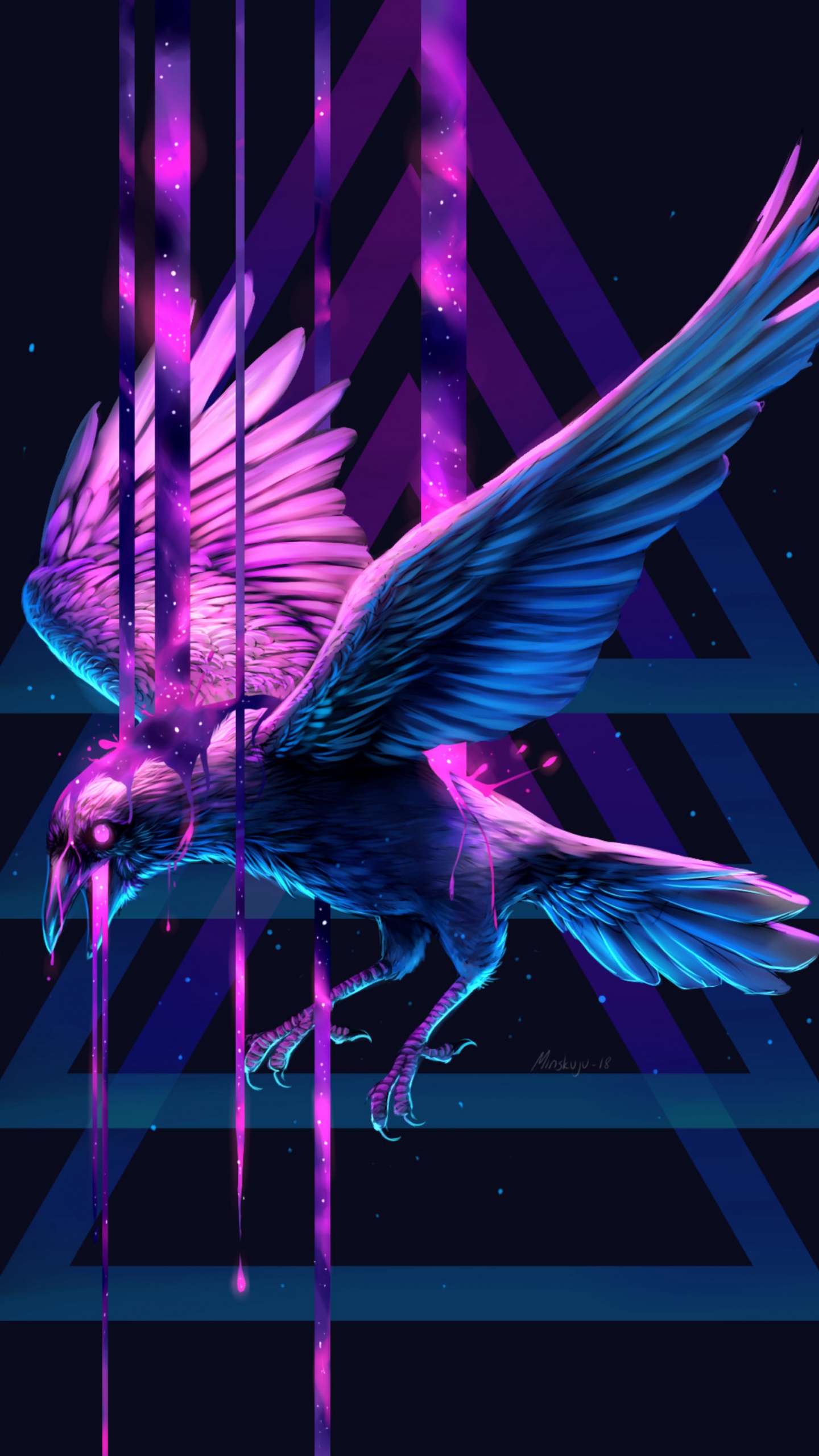 Обои ворон, ворона, графический дизайн, пурпур, Фиолетовый для Google Pixel XL, Meizu Pro 7, Nokia 8, HTC U, Huawei P10 Quad HD, заставка, 1440x2560 картинка