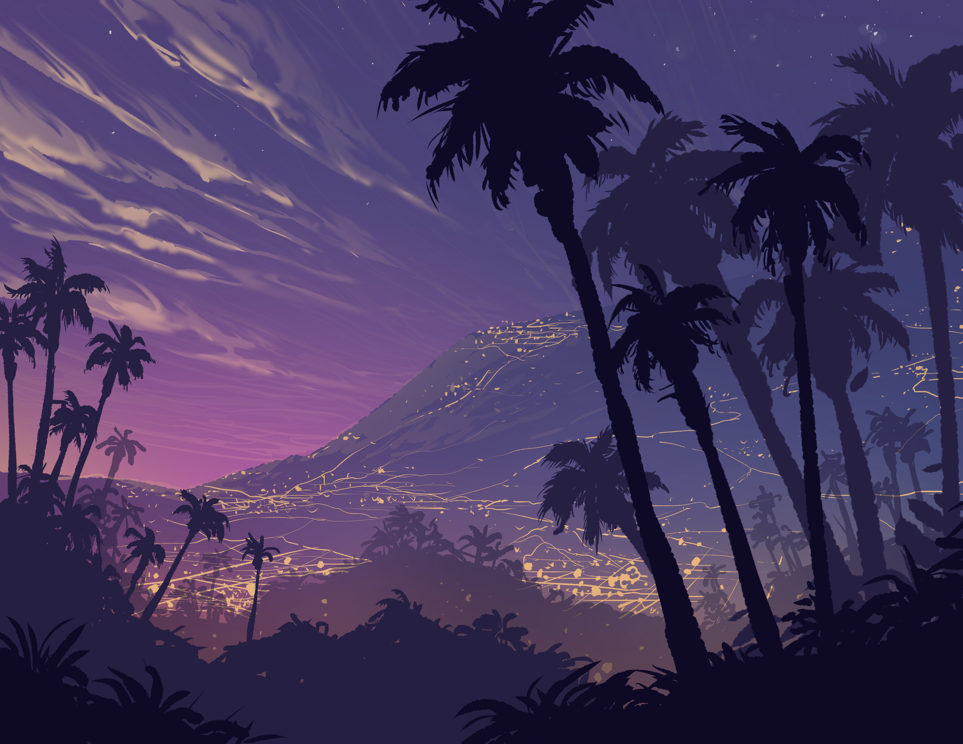 Обои природа, дерево, Пальма, пурпур, утро, фото, заставка