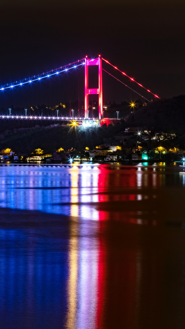 Обои мост, ночь, отражение, вантовый мост, вода для iPhone 6, 6S, 7, 8, заставка, 750x1334 картинка