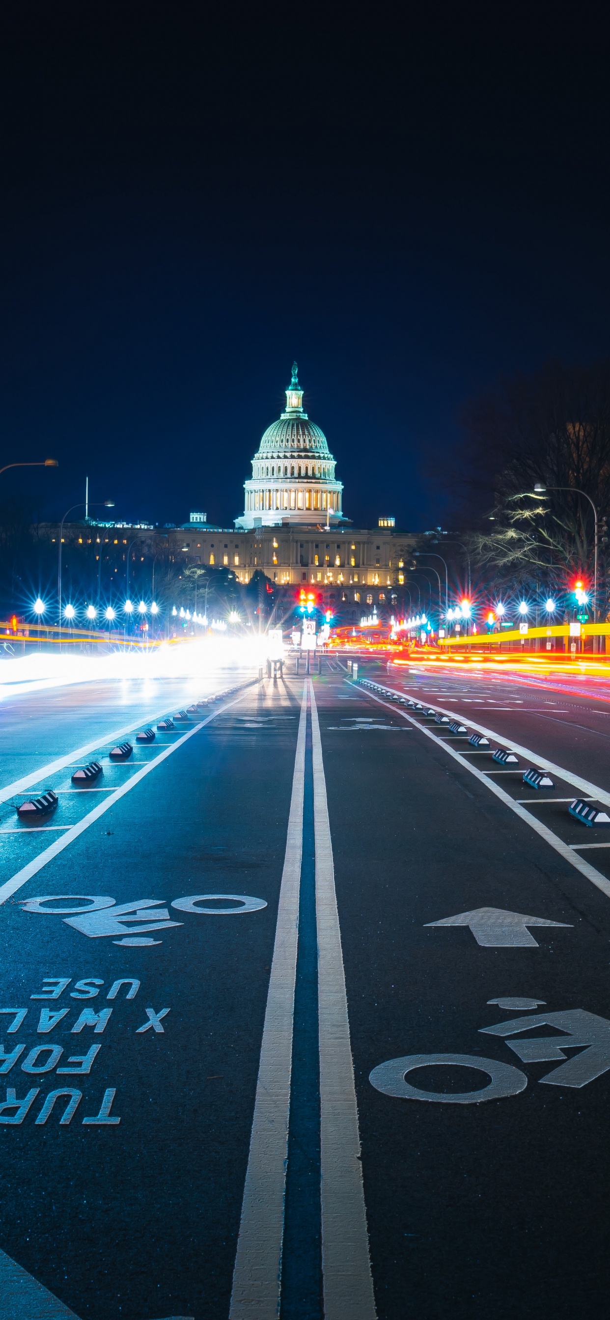 Обои ночь, ориентир, городской район, дорога, свет для iPhone XS Max, заставка, 1242x2688 картинка