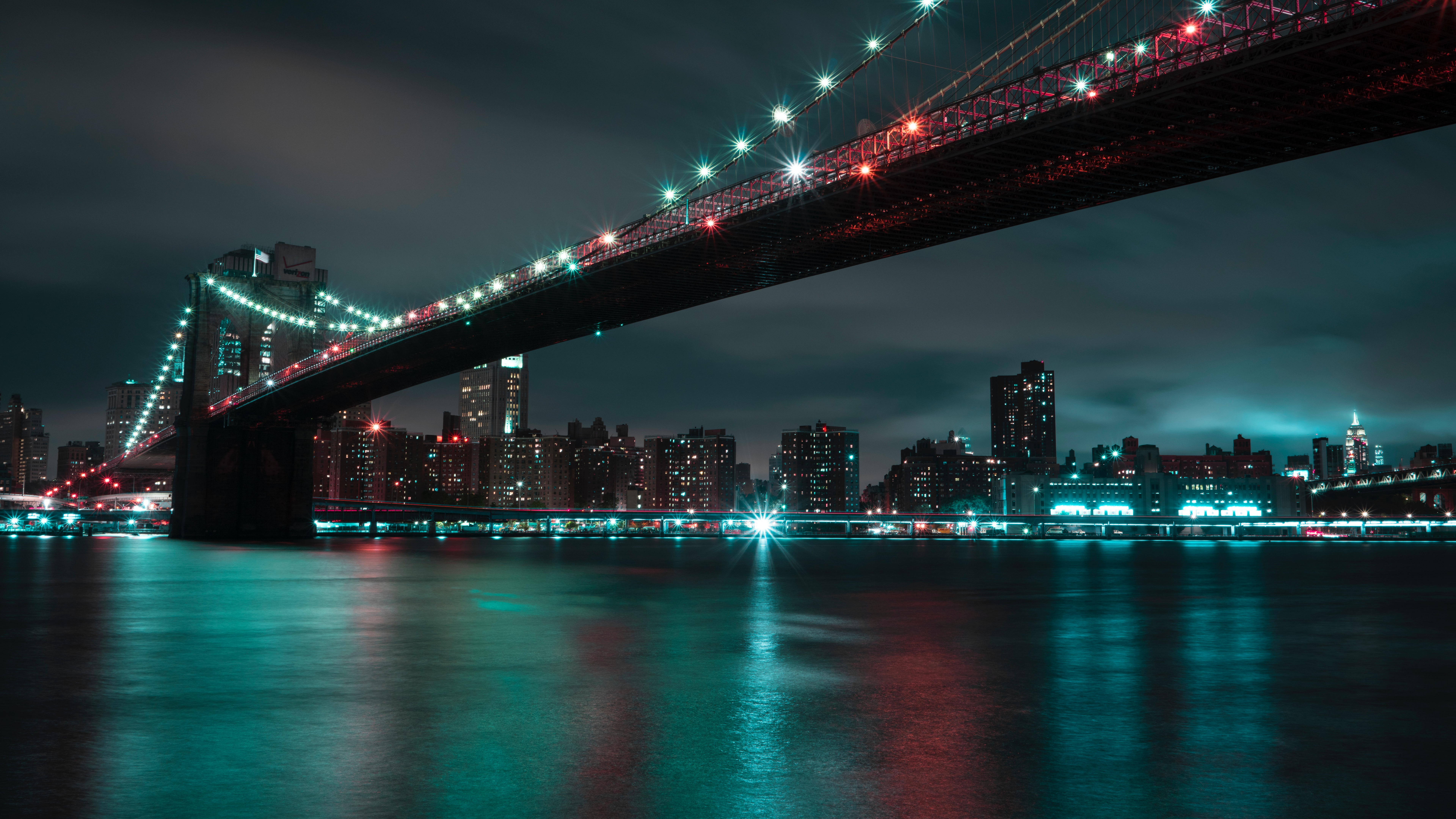 Обои 7680x4320 Бруклинский мост, ночь, городской пейзаж, город, мост, 8K Ultra HD картинка