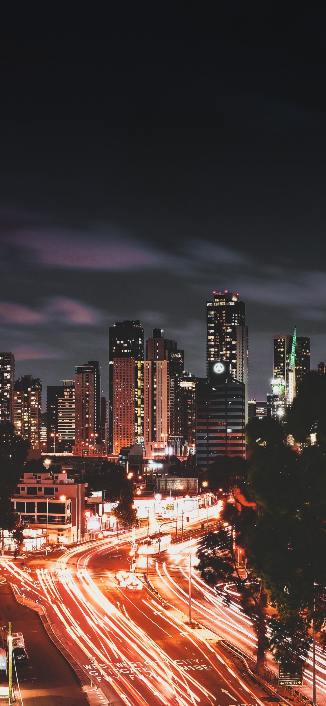 Обои город, городской пейзаж, городской район, метрополия, ночь для iPhone X / XS, заставка, 1125x2436 картинка