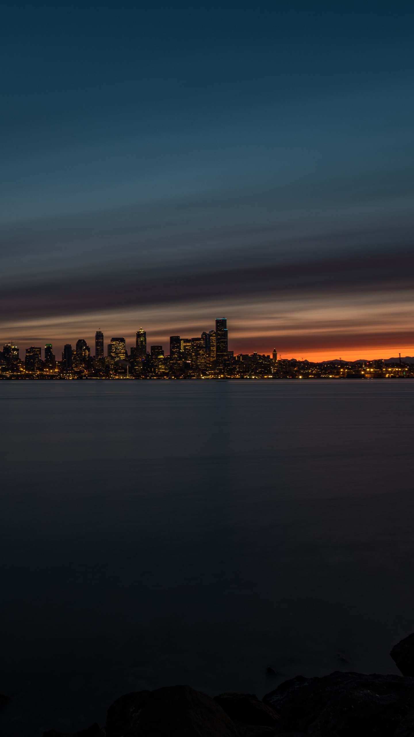 Обои Сиэтл, ночь, вода, горизонт, вечер для Google Pixel XL, Meizu Pro 7, Nokia 8, HTC U, Huawei P10 Quad HD, заставка, 1440x2560 картинка