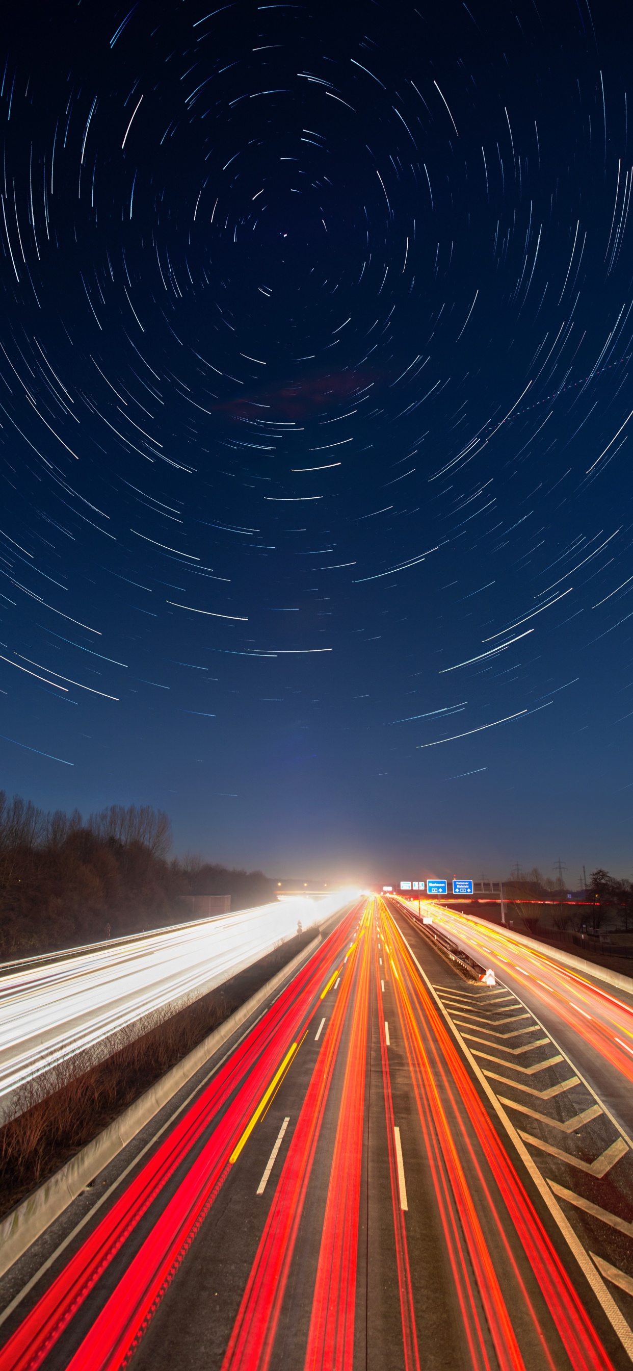 Обои Звездный след, звезда, магистраль, природа, дорога для iPhone XS Max, заставка, 1242x2688 картинка