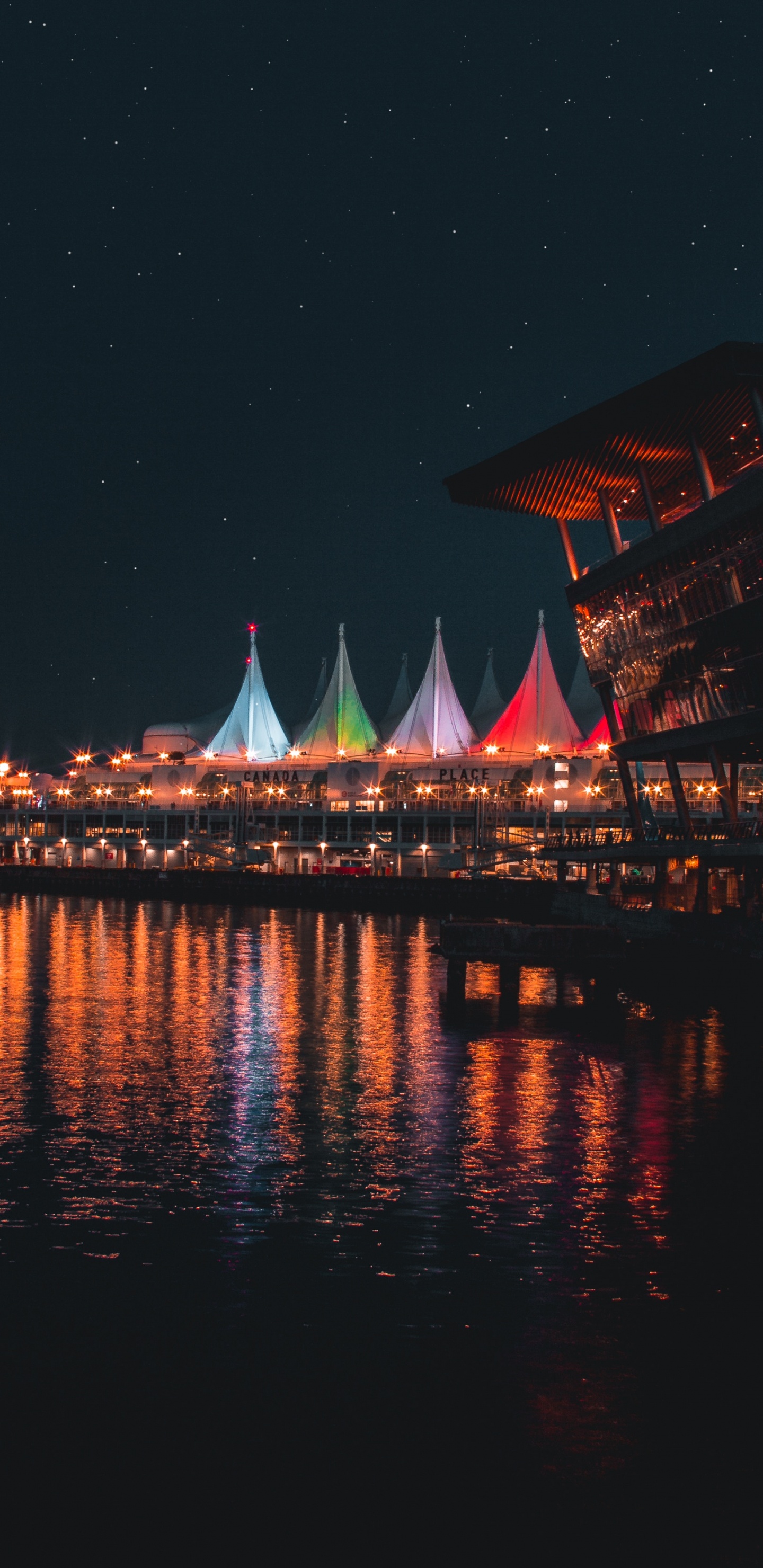 Обои ночь, вода, отражение, красный цвет, ориентир для Samsung Galaxy S8/S8+/S9/S9+/Note 8/Note 9 QHD, заставка, 1440x2960 картинка