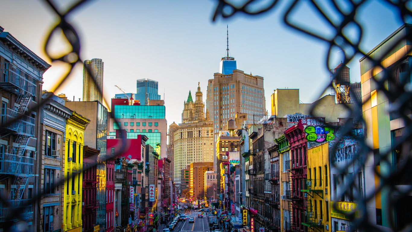 Обои 1366x768 чайнатаун, НьюЙорк, городской район, город, метрополия, HD ready картинка