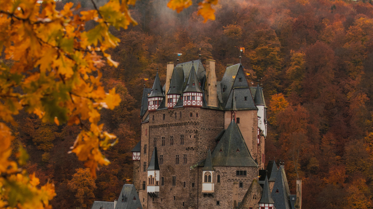 Обои 1280x720 Эльц, Замок Эльц, замок, лист, дерево, HD, HDV, 720p, 16:9 картинка