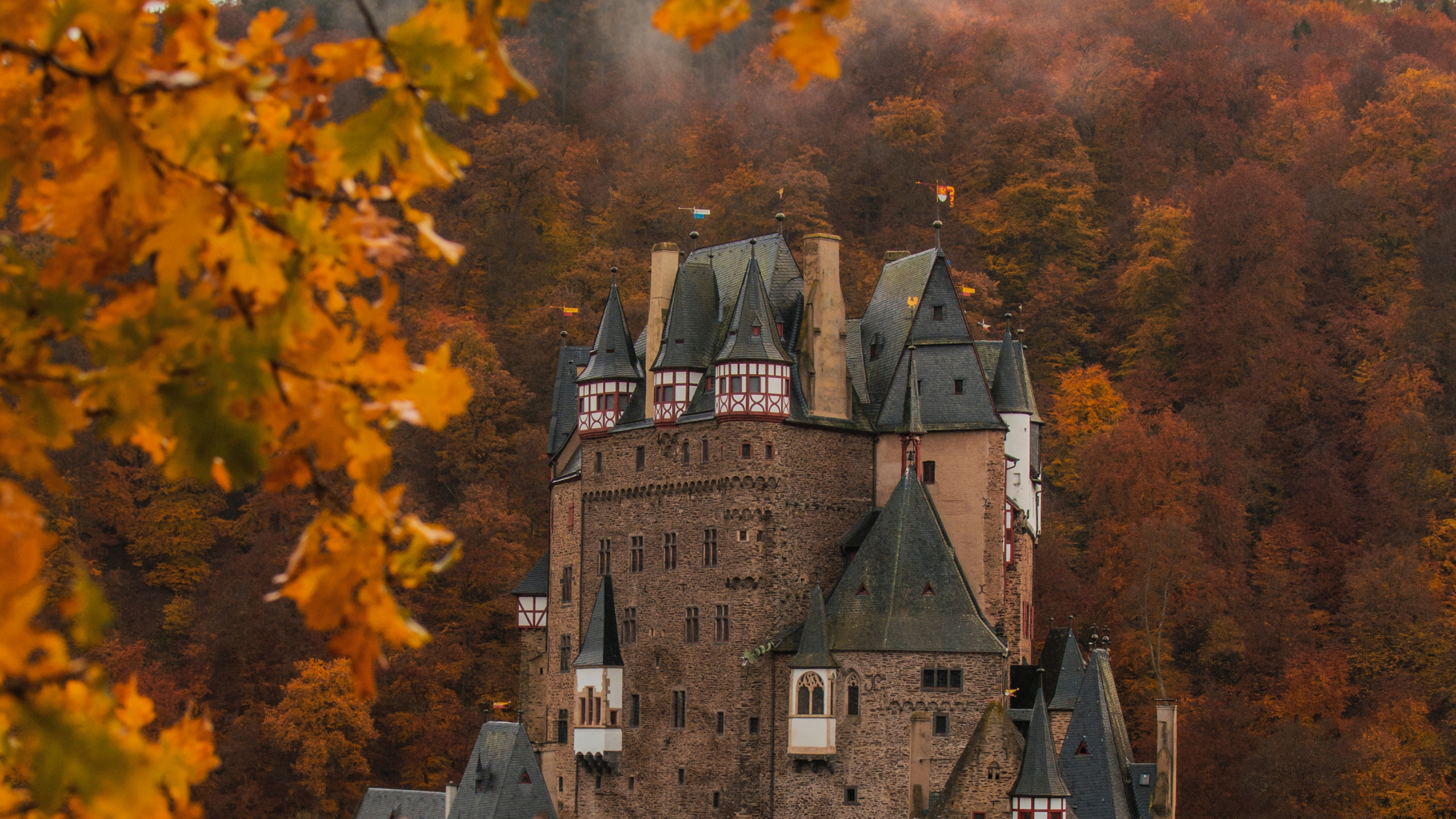 Обои 2560x1440 Эльц, Замок Эльц, замок, лист, дерево, WQHD, QHD, 16:9 картинка