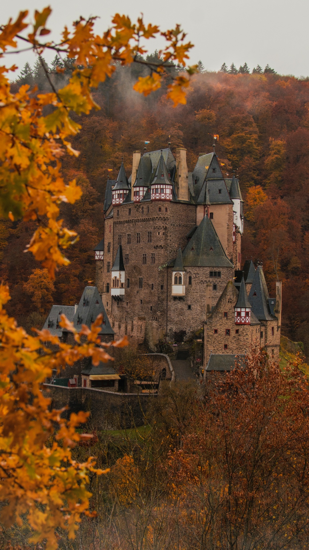 Обои Эльц, Замок Эльц, замок, лист, дерево для iPhone 6S+/7+/8+, заставка, 1080x1920 картинка