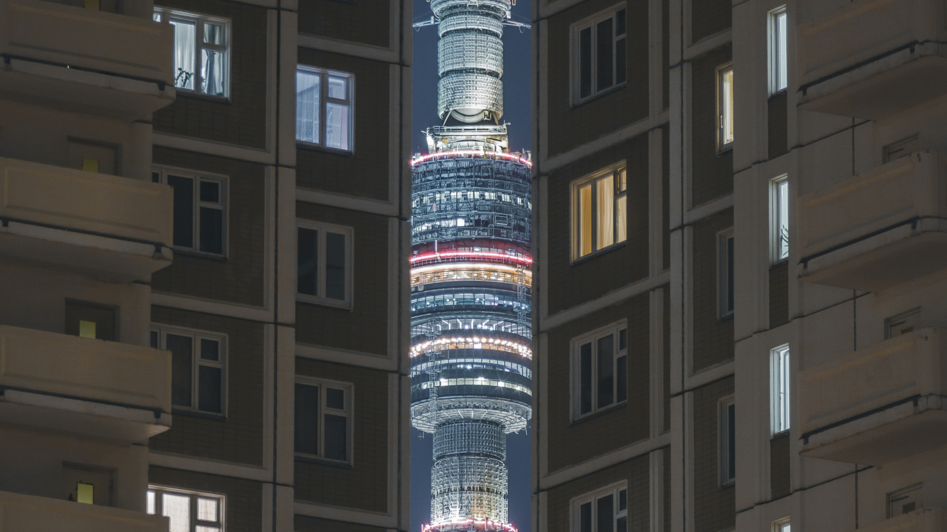 Обои 1920x1080 Останкинская Телебашня, вышка, архитектура, ориентир, башня, Full HD, HDTV, 1080p 16:9 картинка
