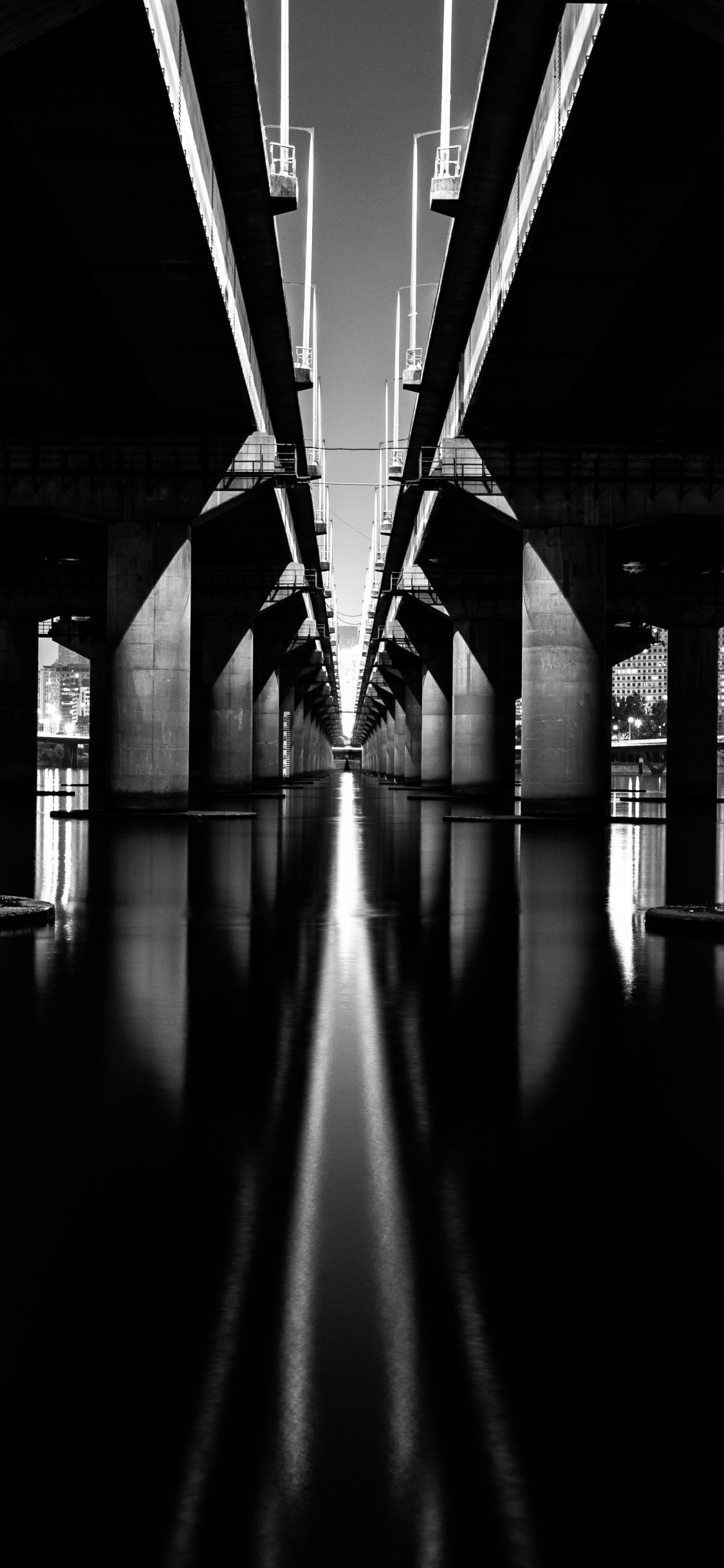 Обои вода, черный, белые, монохромный, мост для iPhone X / XS, заставка, 1125x2436 картинка