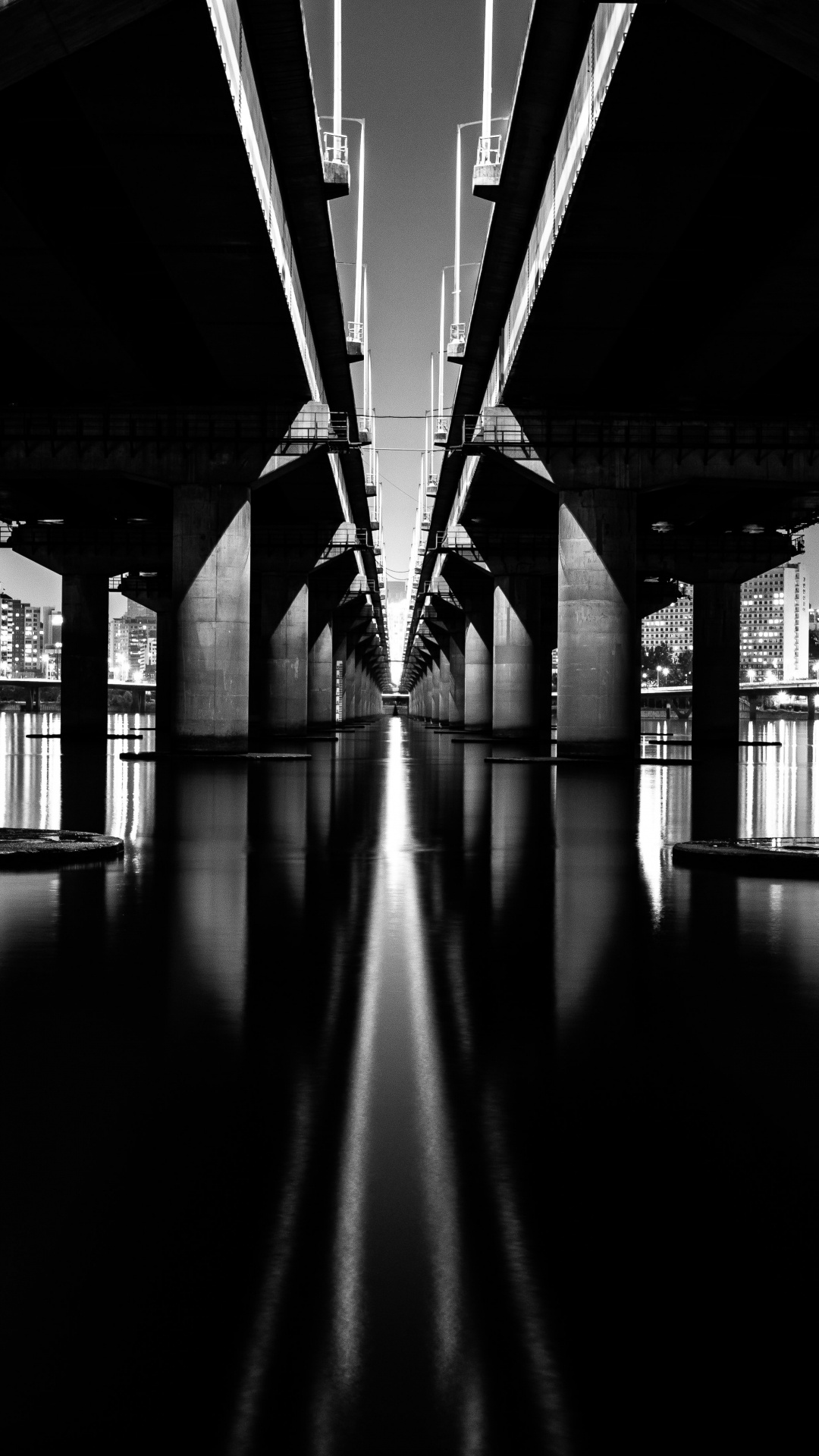 Обои вода, черный, белые, монохромный, мост на телефон Android, 1080x1920 Full HD картинки
