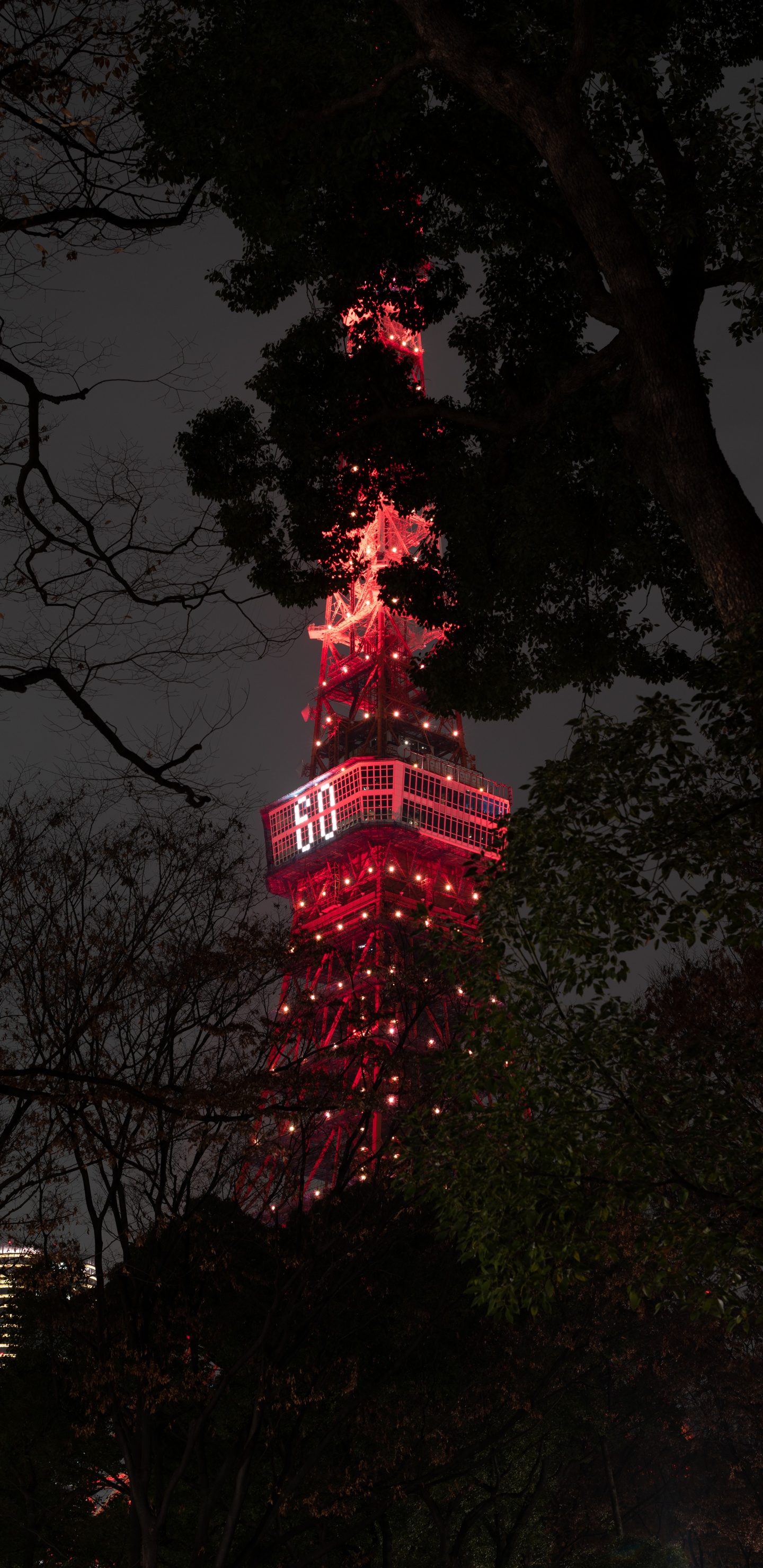 Обои токийская башня, вышка, красный цвет, дерево, темнота для Samsung Galaxy S8/S8+/S9/S9+/Note 8/Note 9 QHD, заставка, 1440x2960 картинка