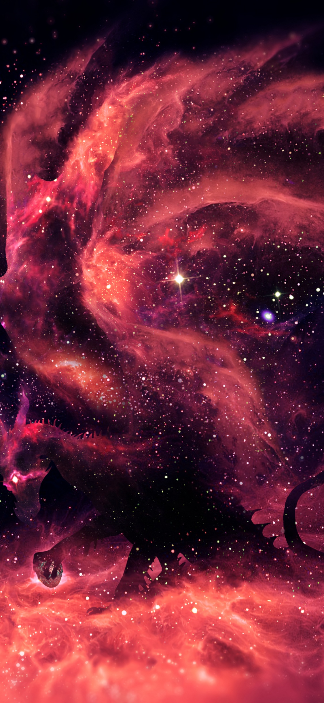Обои дракон, фэнтези, туманность, космическое пространство, астрономический объект для iPhone X / XS, заставка, 1125x2436 картинка