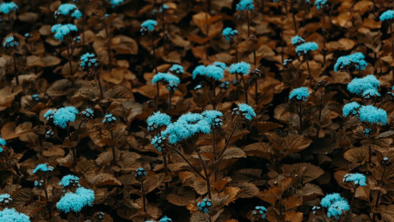 Обои 1366x768 цветок, синий, бирюза, коричневый цвет, почвопокровная, HD ready картинка