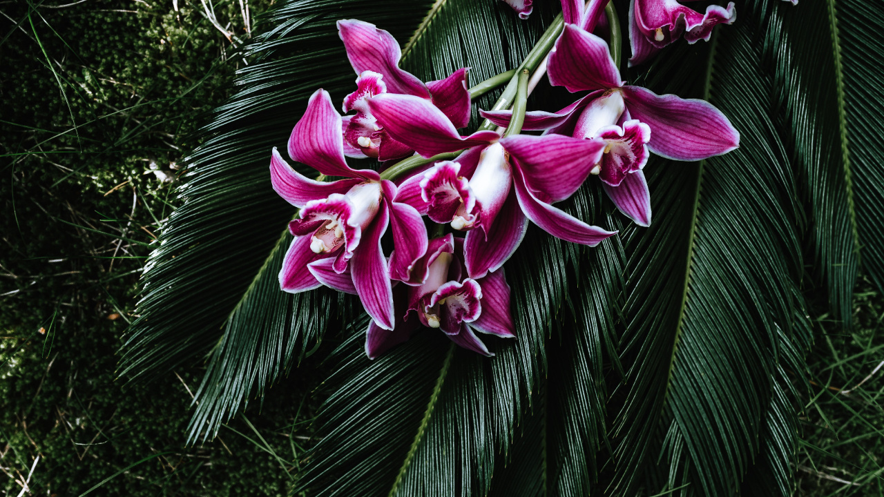 Обои 1280x720 орхидея, цветок, цветочный букет, цветковое растение, розовый, HD, HDV, 720p, 16:9 картинка