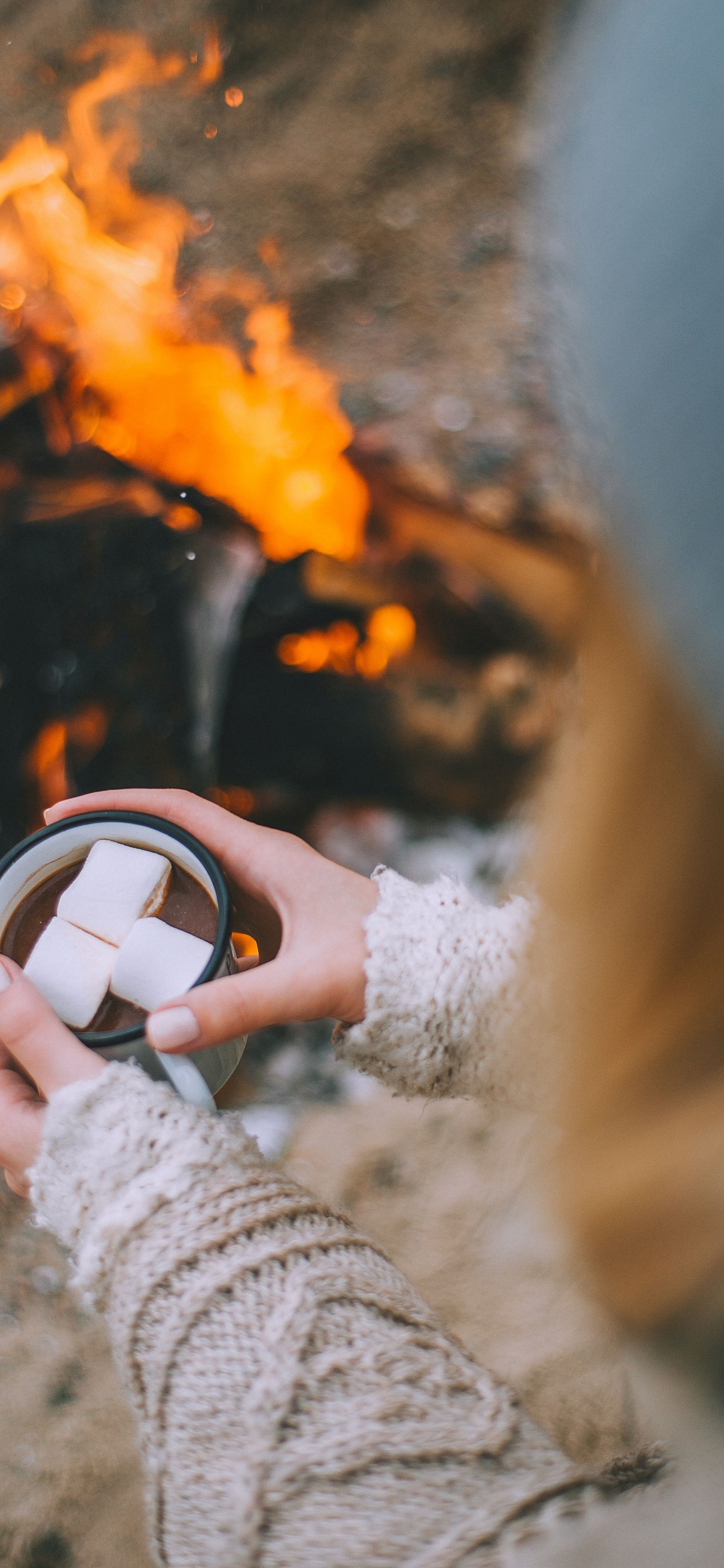 Обои горячий шоколад, огонь, пламя, тепло, зефир для iPhone X / XS, заставка, 1125x2436 картинка