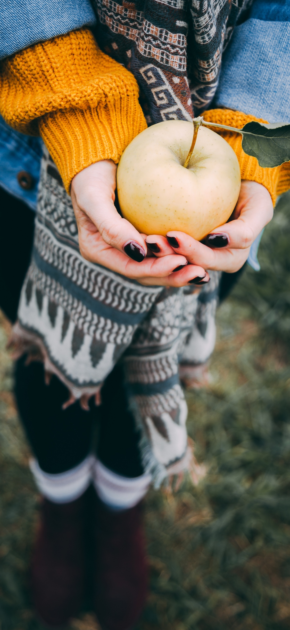 Обои осень, apple, желтый, фрукты, ребенок для iPhone X / XS, заставка, 1125x2436 картинка