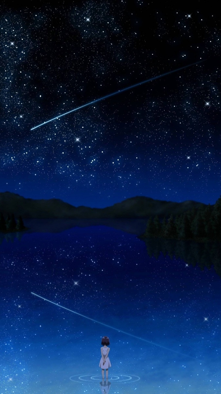 Обои ночное небо, аниме, природа, ночь, атмосфера для HD Samsung Galaxy S3/J3/J4/J5, Meizu M5, Sony Xperia L1/L2, заставка, 720x1280 картинка