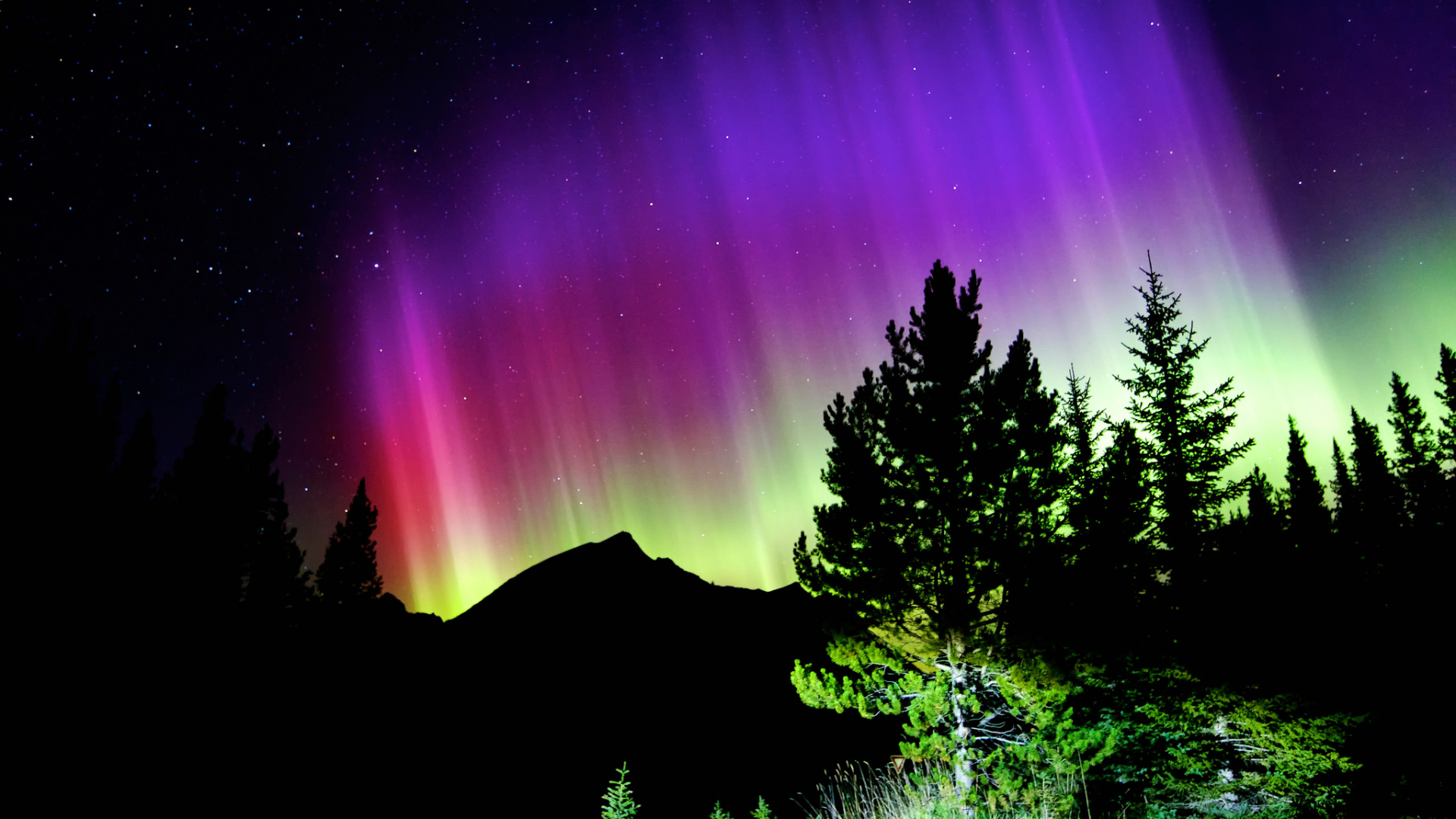 Обои 1920x1080 ночь, Аврора, природа, природный ландшафт, дерево, Full HD, HDTV, 1080p 16:9 картинка