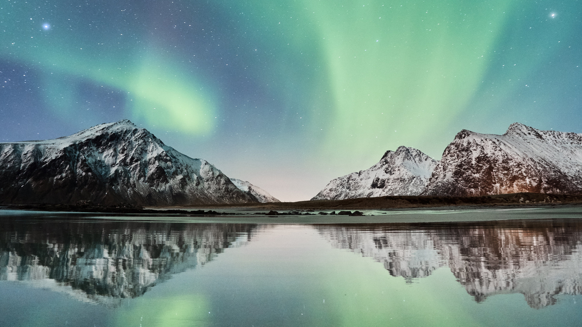 Обои 1920x1080 Аврора, путешествие, природа, природный ландшафт, отражение, Full HD, HDTV, 1080p 16:9 картинка