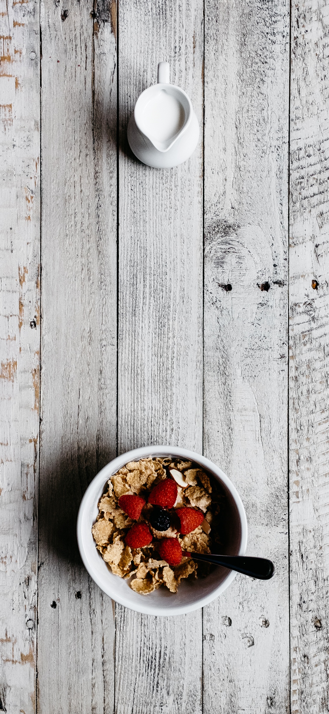Обои сухой завтрак, завтрак, молоко, пища, блюда для iPhone X / XS, заставка, 1125x2436 картинка