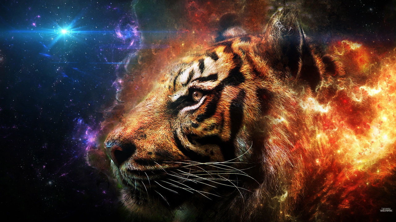 Обои 1280x720 тигр, живопись, бенгальский тигр, кошачьих, живая природа, HD, HDV, 720p, 16:9 картинка