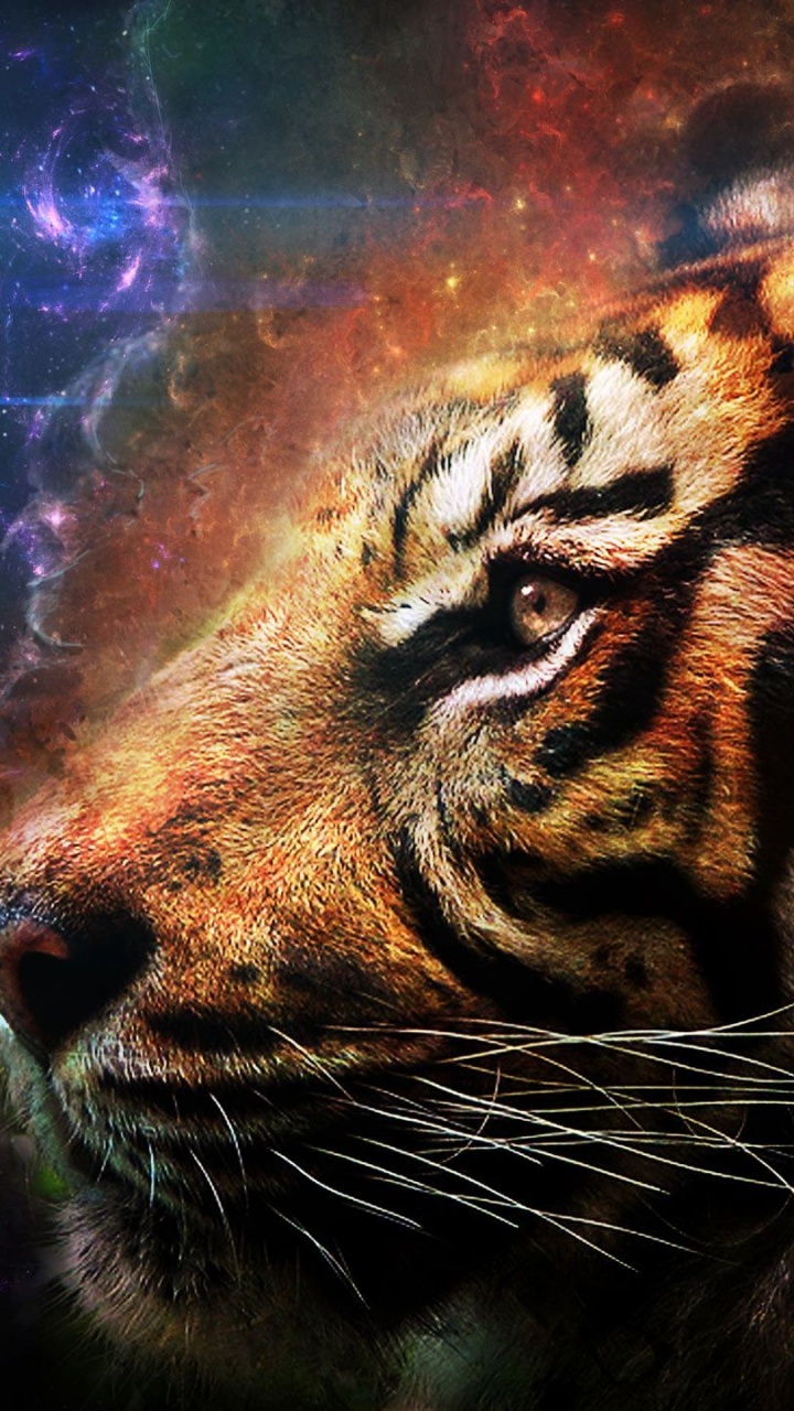 Обои тигр, живопись, бенгальский тигр, кошачьих, живая природа для HD Samsung Galaxy S3/J3/J4/J5, Meizu M5, Sony Xperia L1/L2, заставка, 720x1280 картинка