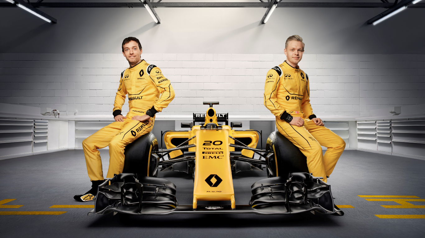 Обои 1366x768 2016 Формула Один Чемпионат Мира, автогонки, Рено, желтый, команда, HD ready картинка