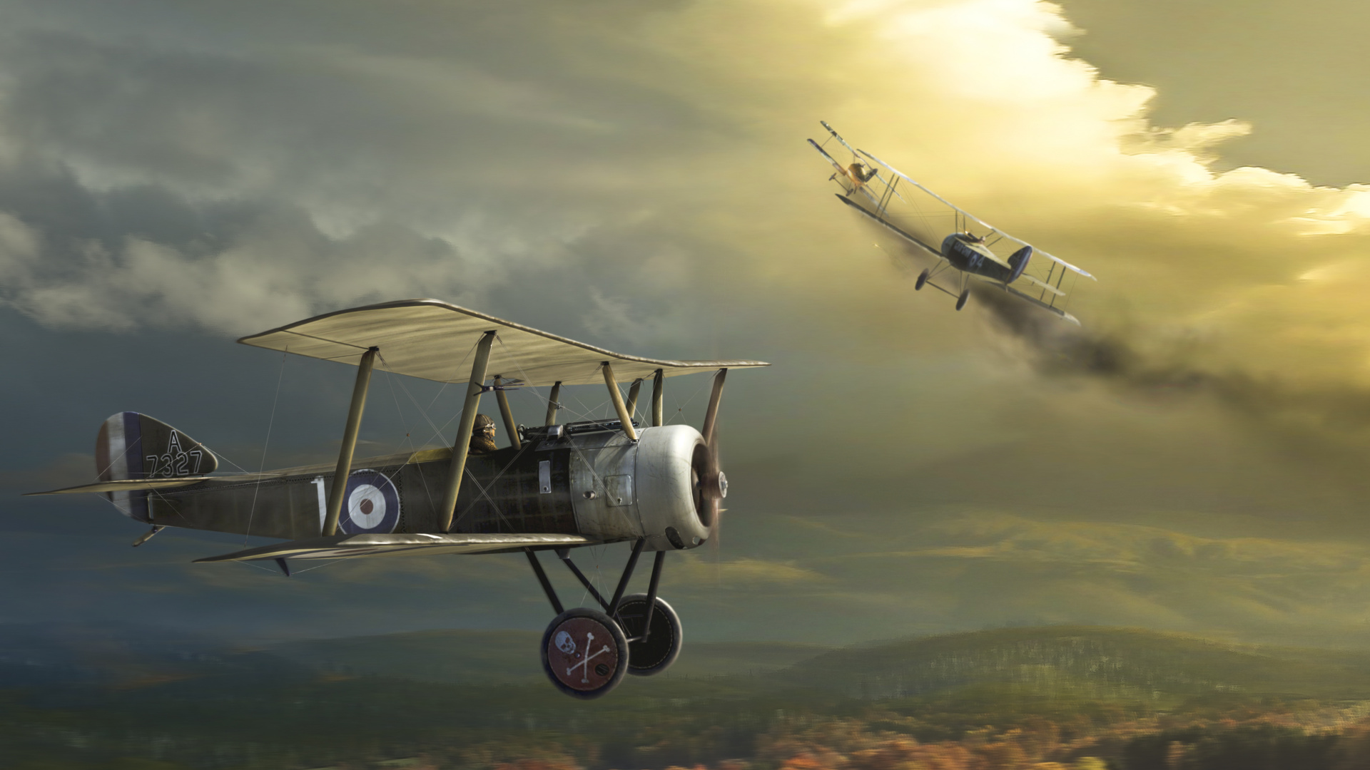 Обои 1920x1080 самолет, самолеты, авиация, биплан, полет, Full HD, HDTV, 1080p 16:9 картинка