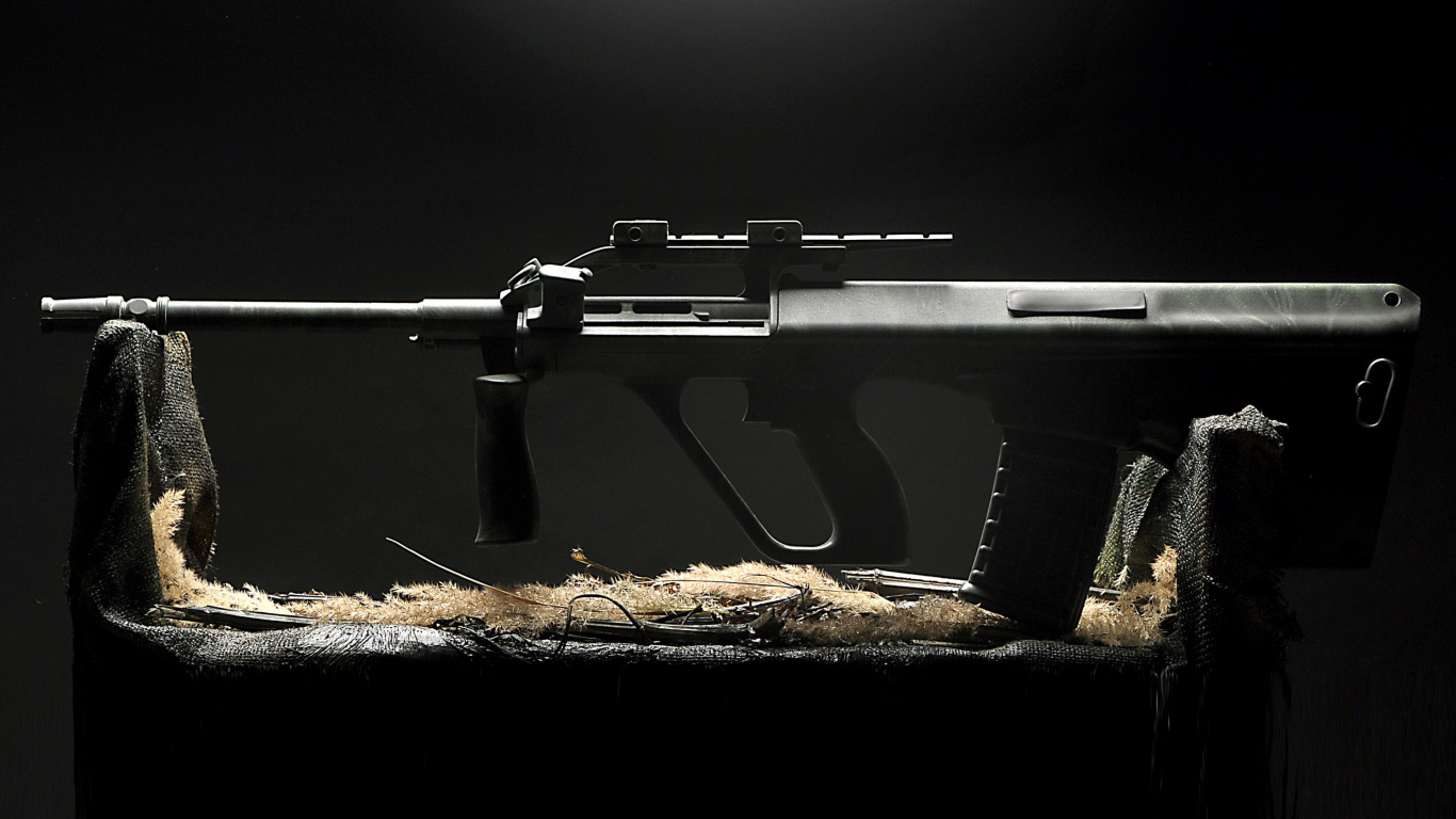 Обои 1366x768 штейр ауг, орудие, черный, оружие, винтовка, HD ready картинка